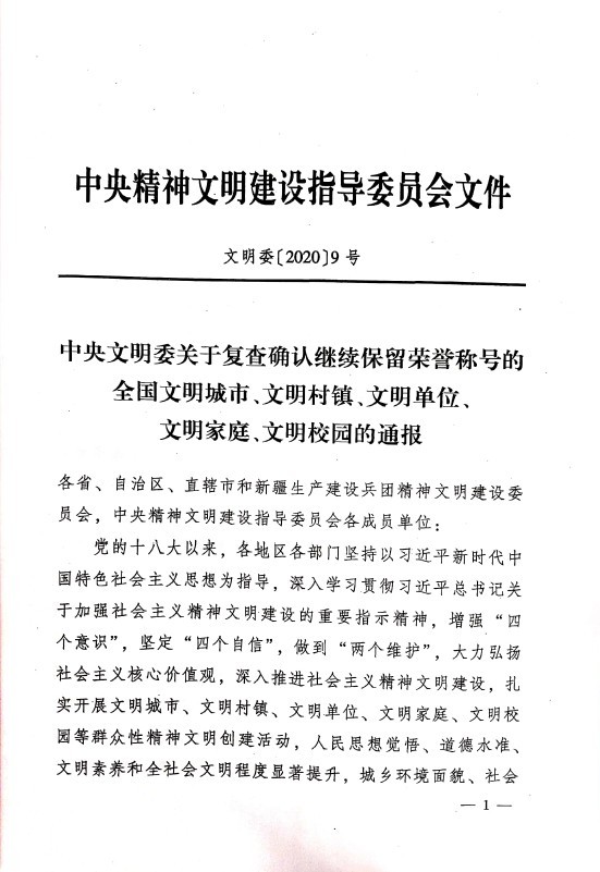 我校繼續(xù)保留全國文明校園榮譽稱號 |