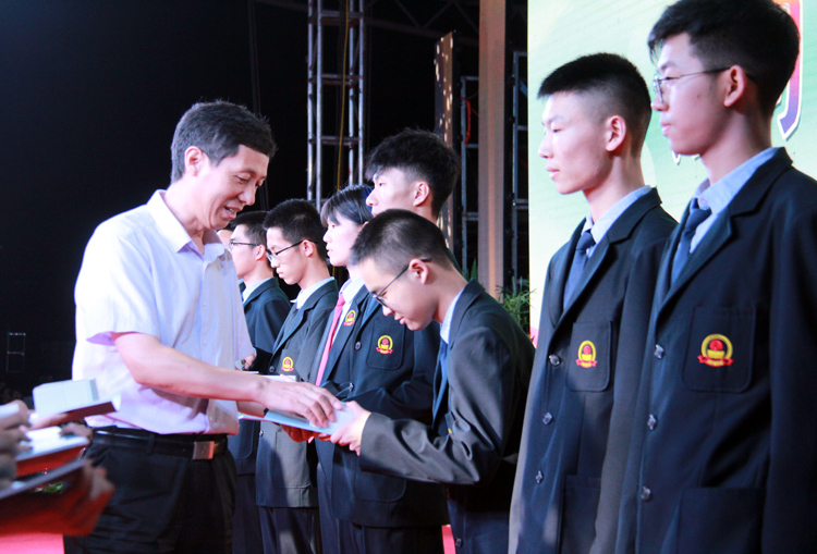 6月20日晚,我校在操場隆重舉行“恰同學少年”2021屆畢業(yè)生畢業(yè)典禮,800余名畢業(yè)生圓滿完成學業(yè),帶著一中的榮光揚帆起航,逐夢新征程。安陽一中全體師生和部分家長齊集一堂,共同見證這難忘的時刻。 在《我和我的祖國》的優(yōu)美鋼琴聲中,晚會正式拉開了序幕。“有匪君子,如切如磋,如琢如磨”,詩樂舞《少年行》彰顯少年風骨。同學們在畢業(yè)長詩《恰同學少年》中采擷收獲又抒寫別離,期待著某年那天,相見仍能會心一笑。學生樂隊的原創(chuàng)歌曲《夏天永遠不拜拜》燃爆舞臺,將活動推向高潮。各班用拍攝的創(chuàng)意視頻對母校說再見,老師們在鏡頭里道出最美的祝愿,學生代表向老師們獻花、擁抱,感謝三年的辛勤付出。 陳朝陽副校長代表學校接受了各班贈送給學校的畢業(yè)留言冊,王國卿副校長向?qū)W生代表贈送校友卡和畢業(yè)紀念冊。學校后勤工作人員代表作為特別嘉賓,抽取了14名幸運同學,崔彥軍校長現(xiàn)場為他們頒發(fā)畢業(yè)證書。 黨委書記、校長崔彥軍代表學校向全體畢業(yè)生表示熱烈祝賀并發(fā)表致辭。崔校長叮囑大家,一是要把讀書求知當成自己矢志不渝的畢生追求,保持求知若渴的熱情;二是要肩負時代的使命,具有擔當精神,把個人理想融入到國家和民族的事業(yè)之中,把小我融入到國家和民族的大我之中,讓青春在拼搏奮斗中不斷升華;三是要有積極向上的心態(tài),保持樂觀、豁達、上進,志存高遠,奔涌向前! |