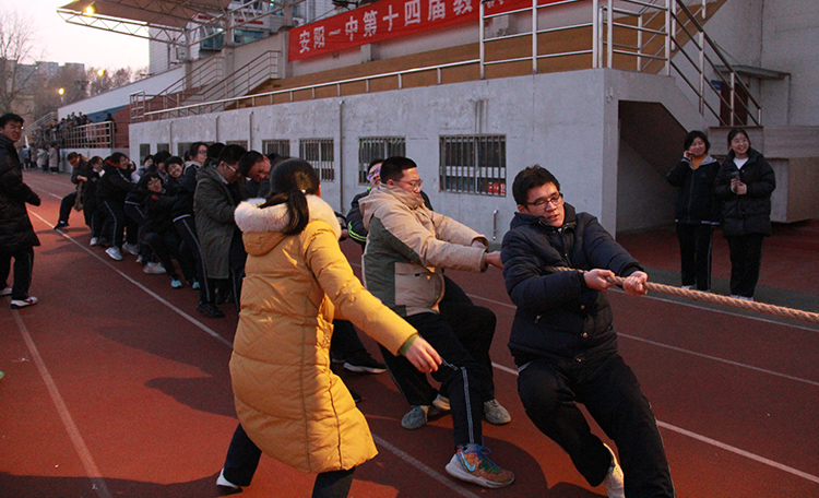 為調(diào)節(jié)緊張的高三復(fù)習(xí)備考生活,增強(qiáng)學(xué)生身體素質(zhì),12月13日—17日下午,我校舉行高三年級拔河比賽。 參賽隊(duì)伍以班級為單位,每班10名男生,10名女生組成。比賽哨聲一響,同學(xué)們就卯足了勁兒拼命向自己的方向拽繩子,班主任喊著號子,跟著同學(xué)們一齊使勁兒。各班的拉拉隊(duì)員們也賣力地加油助威。 拔河比賽間隙,同學(xué)們還參與了旱地龍舟和有軌電車等趣味運(yùn)動。輕松有趣的活動,讓同學(xué)們身心得到放松,現(xiàn)場歡聲笑語一片。 每年我校都舉行高三年級拔河比賽,讓同學(xué)們在競技與合作中,增強(qiáng)團(tuán)隊(duì)意識,充分體會酣暢淋漓、奮勇爭先的痛快。 |