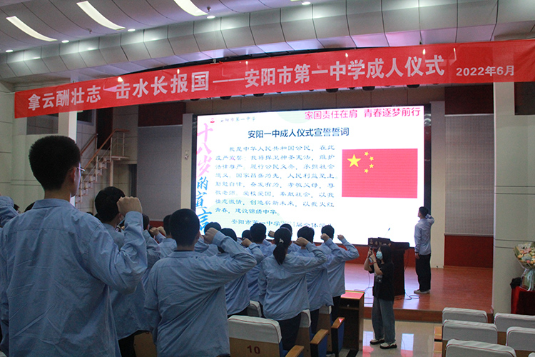 2022年6月20日下午,安陽(yáng)一中2024屆成人禮在電教樓五樓報(bào)告廳隆重舉行。2024屆老師、學(xué)生和家長(zhǎng)代表參加了本次成人儀式。 成人禮共分為五個(gè)環(huán)節(jié)。首先全體學(xué)生起立奏唱國(guó)歌。學(xué)生代表在發(fā)言中,從入學(xué)經(jīng)歷、學(xué)習(xí)生活、個(gè)人成長(zhǎng)、安陽(yáng)一中學(xué)子的擔(dān)當(dāng)?shù)葞追矫嬲劻俗约旱恼J(rèn)識(shí)。家長(zhǎng)代表對(duì)本屆學(xué)生致以成年祝福,并從學(xué)生成長(zhǎng)的角度出發(fā),以自身視角述說了對(duì)孩子成長(zhǎng)的感慨,成年后的期待,同時(shí)以過來人的身份對(duì)學(xué)生提出殷切期望。 隨后,教師代表徐紫銀、李心如老師進(jìn)行發(fā)言。徐老師以文學(xué)作品入手,希望學(xué)生能夠健康成長(zhǎng)、學(xué)會(huì)自立,不畏懼人們的眼光,自強(qiáng)、自愛,活出屬于自己的精彩。李老師則告訴同學(xué)們,當(dāng)面對(duì)生活的困難之時(shí),希望所有人能夠永遠(yuǎn)懷著飽含勇氣的赤子之心,去面對(duì)生活給予的一切,最終成長(zhǎng)為可靠且堅(jiān)定的人。 最后全體學(xué)生莊嚴(yán)宣誓,承諾負(fù)擔(dān)起成年的責(zé)任,崇尚科學(xué),志存高遠(yuǎn),不尚浮華。整齊的誓言在報(bào)告廳回響,成人禮圓滿結(jié)束。 十八歲,是施展抱負(fù)的季節(jié),是一部巨著的序言,同學(xué)們將用自己的雙手去實(shí)踐,用自己的心靈去感受,把人生之書寫的豐富有趣! |