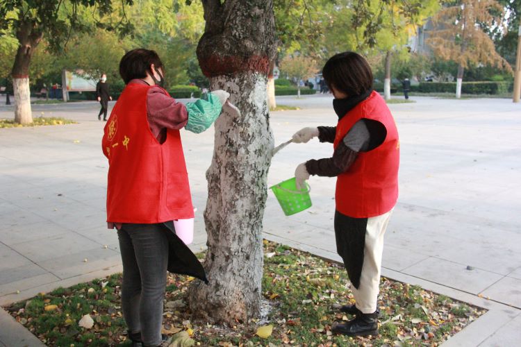 10月24日,我校開(kāi)展建校勞動(dòng),為越冬樹(shù)木涂白樹(shù)干,保障樹(shù)木平安過(guò)冬。 總務(wù)處調(diào)制好樹(shù)干涂白劑,發(fā)放小桶、刷子、圍裙、手套、袖套等工具,并由綠化工作人員為大家進(jìn)行樹(shù)干涂白技術(shù)指導(dǎo)。老師們按照規(guī)劃的區(qū)域,仔細(xì)刷涂,遠(yuǎn)遠(yuǎn)望去,棵棵樹(shù)木如同穿上了一雙雙長(zhǎng)筒“白靴”。 為樹(shù)木刷上涂白劑,不僅可以殺菌、防蟲(chóng),還能保暖、防曬。吸收一定熱量,樹(shù)干就不會(huì)因晝夜溫差巨大而凍裂,從而有效保護(hù)校園內(nèi)樹(shù)木的健康生長(zhǎng)。 建校初期,老一輩的安陽(yáng)一中人在校園里親手栽下了海棠、槐樹(shù)、白楊……這些已成為校園里最美的風(fēng)景;如今,我校每年都開(kāi)展建校勞動(dòng),安陽(yáng)一中人依然通過(guò)各種方式共同呵護(hù)我們綠樹(shù)成蔭的美麗校園。 |