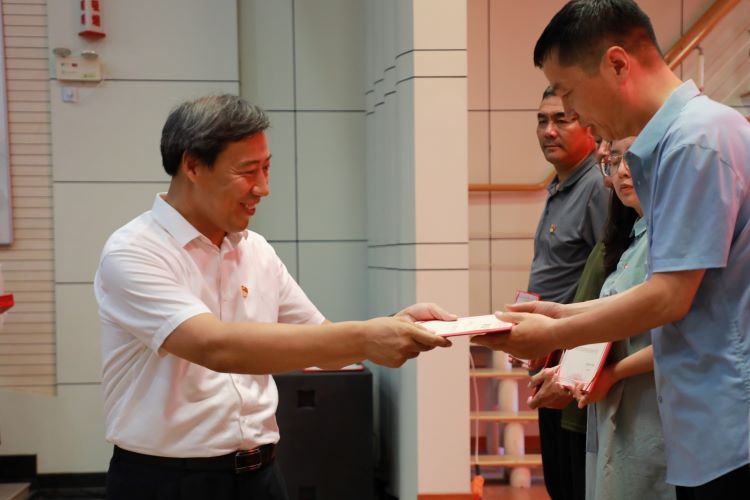 為慶祝中國共產(chǎn)黨成立102周年,激勵黨員教師砥礪初心,勇?lián)姑?月30日,我校召開慶祝建黨102周年暨表彰大會。 大會在莊嚴肅穆的國歌聲中拉開帷幕,黨委委員陳朝陽宣讀表彰2022年度優(yōu)秀黨員的決定,校黨委書記崔彥軍,委員陳朝陽、徐珍玲、李恒為獲獎優(yōu)秀黨員頒發(fā)榮譽證書。在典型發(fā)言中,優(yōu)秀黨員代表趙燕杰深情回顧了自己的入黨初心和工作經(jīng)歷,表示將繼續(xù)發(fā)揚“敬業(yè)愛生,踏實嚴謹,精益求精”的一中教風,培養(yǎng)立大志、明大德、成大才、擔大任的時代新人。優(yōu)秀黨員代表鄒寶剛從“堅持黨建引領,落實自身職責”“立足育人崗位,踐行教師本色”“提升專業(yè)素養(yǎng),助力學生成長”三方面談對教師職業(yè)的認識。隨后,與會黨員重溫入黨誓詞,黨委委員李恒領誓,面對鮮紅的黨旗,我們用響亮的誓言,表達對黨的忠誠與熱愛。 在慶祝大會之后,黨委書記、校長崔彥軍為全體黨員上了一堂題為《堅持立德樹人,辦人民滿意的一中》的專題黨課。崔書記從一個共產(chǎn)黨員對工作的思考入手,重點分析了學校的現(xiàn)狀、問題和目標,對全體黨員同志提出四點要求:一要時刻牢記黨員身份和黨員義務,努力提高為人民服務的本領,堅持黨和人民的利益高于一切;二要切實發(fā)揮黨員先鋒模范帶頭作用,在態(tài)度、業(yè)務、生活等方面以身作則,率先垂范;三要全面理解黨的教育方針,堅持教育為社會主義現(xiàn)代化建設服務,為人民服務,把立德樹人作為教育的根本任務,全面實施素質教育,培養(yǎng)德智體美全面發(fā)展的社會主義建設者和接班人,努力辦好人民滿意的教育;四要爭做總書記要求的“四有好老師”,有理想信念、有道德情操、有扎實學識、有仁愛之心。 在下一步工作中,我校將繼續(xù)高舉習近平新時代中國特色社會主義思想偉大旗幟,堅持黨建引領,把黨的宗旨落實到學校工作中,為黨育人,為國育才,全面推進黨建與教育教學工作深度融合,發(fā)揮黨員的先鋒模范作用和黨組織的戰(zhàn)斗堡壘作用,落實立德樹人根本任務,辦人民滿意的教育。