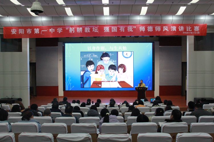 躬耕教壇,強國有我。2023年12月28日,安陽一中師德師風演講比賽在電教樓報告廳隆重舉行。來自不同學科的11名優(yōu)秀教師準備充分,各展風采。經(jīng)過激烈角逐,張譯丹老師獲得特等獎,同時比賽評選出一等獎3名,二等獎7名。