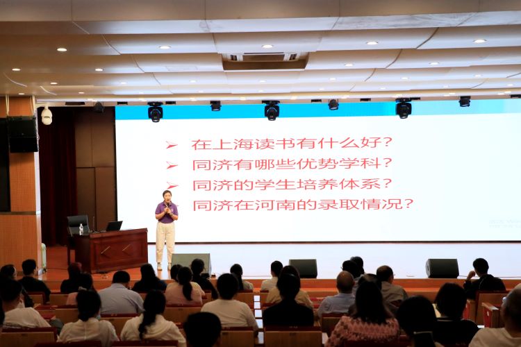 5月20日,同濟(jì)大學(xué)生命科學(xué)與技術(shù)學(xué)院分子生物學(xué)博士、副教授張夢杰,生命科學(xué)與技術(shù)學(xué)院副教授、碩士生導(dǎo)師楊樺為我校學(xué)生和家長帶來科普講座和招生政策宣講。 張夢杰教授為學(xué)生帶來了題為《直面壓力,呵護(hù)腸道菌群與健康》的科普講座,她從什么是腸道菌群,腸道菌群從哪里來講起,向同學(xué)們普及了腸道菌群組成、腸道菌群與人類健康的關(guān)聯(lián)、壓力下腸道菌群健康的呵護(hù)等知識(shí),提醒同學(xué)們關(guān)注腸道健康,正確面對精神壓力,張教授的講解風(fēng)趣幽默,整場講座氣氛熱烈,同學(xué)們與張教授積極互動(dòng),收獲頗豐。 在招生宣講會(huì)上,楊樺教授生動(dòng)詳實(shí)地為家長們介紹了同濟(jì)大學(xué)的辦學(xué)歷程、師資力量、專業(yè)優(yōu)勢、學(xué)科建設(shè)、環(huán)境設(shè)施等基本情況,并向家長們解讀了同濟(jì)大學(xué)的招生政策,家長們也收獲滿滿。 同濟(jì)大學(xué)教授帶來的科普講座既緊貼科學(xué)前沿又密切聯(lián)系生活,在2023年我校科學(xué)文化體育藝術(shù)節(jié)期間,同濟(jì)大學(xué)的四位教師就為我校學(xué)子帶來了“用智能手機(jī)做物理實(shí)驗(yàn)”“影視特效”“DNA粗提取實(shí)驗(yàn)”“蝴蝶標(biāo)本制作”的科普實(shí)踐講座,幫助我校學(xué)子拓寬視野、增長見識(shí)。本次宣講,使同學(xué)們進(jìn)一步增強(qiáng)科學(xué)素養(yǎng),明確前進(jìn)方向,樹立遠(yuǎn)大理想,做新時(shí)代青年。 |