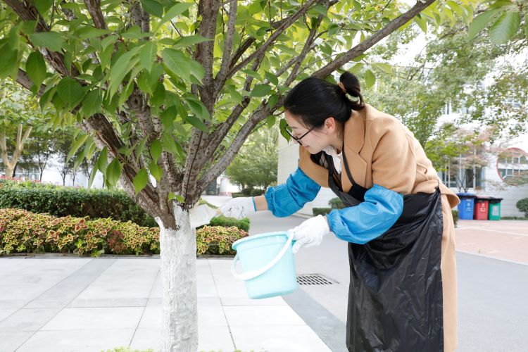 為進(jìn)一步做好校園樹木養(yǎng)護(hù)管理,使樹木安全越冬,美化校園,10月24日,我校開展建校勞動(dòng),對(duì)校園內(nèi)樹木進(jìn)行刷白養(yǎng)護(hù)。 學(xué)??倓?wù)處提前調(diào)制好涂白劑,為老師們發(fā)放刷子、涂料、圍裙、袖套等工具,并請(qǐng)綠化工作人員為大家進(jìn)行樹干涂白技術(shù)指導(dǎo)。老師們前往各自負(fù)責(zé)的區(qū)域,仔細(xì)為校園里的海棠、白楊等各種樹木刷涂保護(hù)劑。本周值周班同學(xué)也參與了樹木刷白養(yǎng)護(hù)工作,同學(xué)們合作默契,體會(huì)到了勞動(dòng)的意義。在師生的共同努力下,校園內(nèi)樹木穿上厚實(shí)的“白靴子”,有效防蟲、防凍害和日灼,避免霜寒,既整齊又美觀,成為了一道靚麗的風(fēng)景線。 我校每年都開展建校勞動(dòng),不僅增強(qiáng)了師生們的愛校意識(shí)、護(hù)綠意識(shí)、環(huán)保意識(shí),也提高了大家的勞動(dòng)實(shí)踐能力,培養(yǎng)了團(tuán)隊(duì)協(xié)作能力,同時(shí),使大家懂得了勞動(dòng)的艱辛,獲得了勞動(dòng)的成就感、喜悅感,更加珍惜、愛護(hù)美麗的校園,營造了溫馨、和諧的工作學(xué)習(xí)環(huán)境。 |