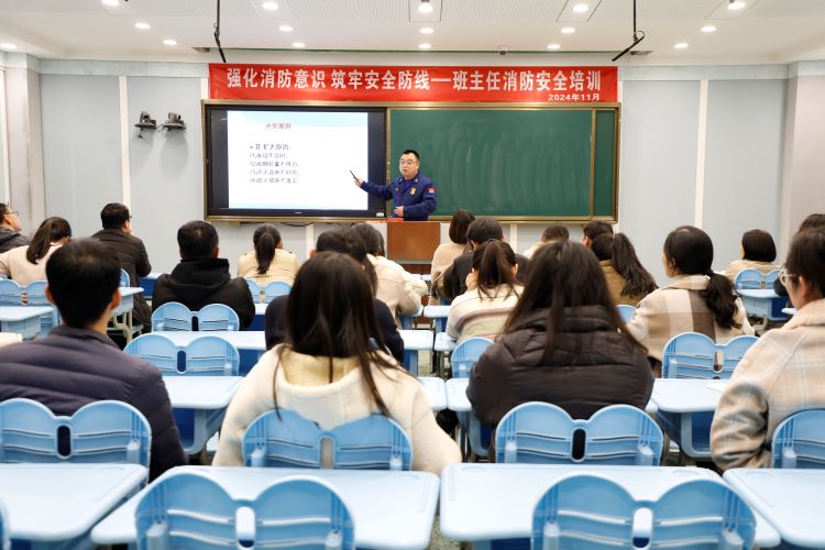 為加強班主任的消防安全意識和能力,提高應急應變能力,進一步做好校園安全工作,11月7日,我校以“強化消防意識,筑牢安全防線”為主題,開展班主任消防安全專題培訓,此次培訓邀請了文峰區(qū)消防救援大隊參謀郭輝進行授課,全體班主任參加了此次培訓。