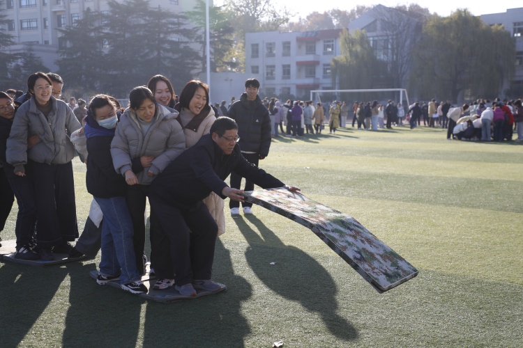 為豐富教職工的業(yè)余生活,增強(qiáng)凝聚力和向心力,踐行“和諧校園 健康前行”的理念,12月8日,安陽一中、正一中學(xué)舉辦第十六屆教職工運(yùn)動會,全體教職工組成7支代表隊(duì),沐浴冬日暖陽,相聚綠茵場,共赴一場關(guān)于活力與熱情的盛會。 上午八時(shí),各代表隊(duì)以昂揚(yáng)的身姿、整齊的步伐依次入場。入場式后,全場肅立共唱中華人民共和國國歌。副校長劉剛存主持開幕式,運(yùn)動員代表王思遠(yuǎn)和裁判員代表董嘉鑫莊嚴(yán)宣誓。校工會主席、副校長陳朝陽致開幕辭,校黨委委員、副校長徐珍玲宣布第十六屆教職工運(yùn)動會正式開始。 此次教職工運(yùn)動會設(shè)置了運(yùn)轉(zhuǎn)乾坤、蒙眼取水、摸石過河等11個(gè)既富有趣味性又考驗(yàn)團(tuán)隊(duì)協(xié)作能力的比賽項(xiàng)目。賽場上,教職工們化身運(yùn)動健將,全力以赴,拔河比賽更是將現(xiàn)場氛圍推向高潮。矯健的步伐、默契的配合、流暢的銜接,教職工們展現(xiàn)出了不凡的競技水平和團(tuán)隊(duì)協(xié)作精神。加油聲、歡呼聲、歡笑聲此起彼伏,匯聚成一股強(qiáng)大的力量,激勵著大家不斷超越自我,奮勇爭先。 教職工運(yùn)動不僅增強(qiáng)了教職工的身體素質(zhì),展示了良好的精神風(fēng)貌,更推動了校園文化的建設(shè),傳達(dá)了以健康的身體和飽滿的精神狀態(tài)面對工作生活的理念。 |