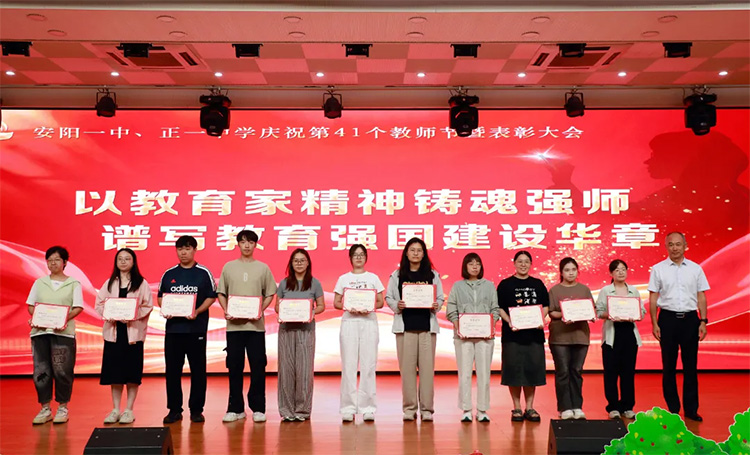 9月9日下午,我校隆重舉辦第41個教師節(jié)慶祝暨表彰大會。 黨委書記徐珍玲在大會上致辭,她首先向全體教師致以節(jié)日問候,隨后深情回顧一中79年的發(fā)展歷程,并鼓勵在場教師以更加堅(jiān)定的信念和更加專業(yè)的素養(yǎng),讓一中精神在新時代持續(xù)綻放光芒。她表示,學(xué)校將繼續(xù)以教育家精神為指引,在教育的沃土上辛勤耕耘,為學(xué)生的健康成長筑牢根基,為教育強(qiáng)國的建設(shè)貢獻(xiàn)一中力量! 黨委委員、副校長董繼軍宣讀表彰決定。大會為2024-2025學(xué)年的先進(jìn)教研組、優(yōu)秀教師、優(yōu)秀教育工作者、優(yōu)秀青年教工、教學(xué)成績優(yōu)勝獎等先進(jìn)集體和個人頒發(fā)了榮譽(yù)證書。 優(yōu)秀教師代表鄭紅龍?jiān)诎l(fā)言中表示,一代又一代一中人,都在用自己的行動詮釋著“強(qiáng)師”的內(nèi)涵,把一中的優(yōu)良傳統(tǒng)傳承好、發(fā)揚(yáng)好,是每一位一中人義不容辭的責(zé)任。優(yōu)秀教師代表賴?yán)缺硎?,教育?qiáng)國的建設(shè)不是一句口號,它需要我們以教育家精神為引領(lǐng),把個人的教育理想融入國家發(fā)展中。 在《師道·年華》短片中,李愛紅、李月季、羅亮、呂素清、高水平、辛蘭芳六位即將退休的教師分享了自己的教育感悟。他們多年來滿懷熱忱,默默奉獻(xiàn)于學(xué)生成長;孜孜不倦,為學(xué)校發(fā)展傾注心血。這份深厚的教育情懷與堅(jiān)守,深深感動了在場教師。徐書記代表學(xué)校向即將退休的各位老師獻(xiàn)花,感謝他們多年來為學(xué)校發(fā)展做出的貢獻(xiàn)。 詩朗誦《三棵樹的信》與歌曲《老師,我總是想起你》,詮釋了教育家精神。會上還表演了舞蹈《送你一朵小紅花》、舞蹈《小城謠》和歌曲《一聲老師,一生老師》,大會在小合唱《粉筆》的歌聲中圓滿落幕。 以教育家精神鑄魂強(qiáng)師,譜寫教育強(qiáng)國建設(shè)華章。我校教職工將繼續(xù)同心同德、攜手奮進(jìn),傳承“敬業(yè)愛生、踏實(shí)嚴(yán)謹(jǐn)、精益求精”的優(yōu)良教風(fēng),共同鑄就學(xué)校發(fā)展新篇章。