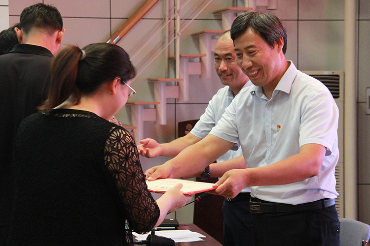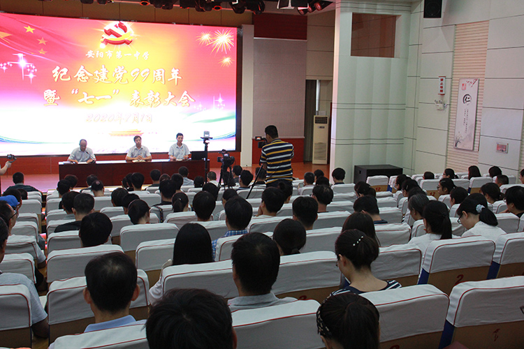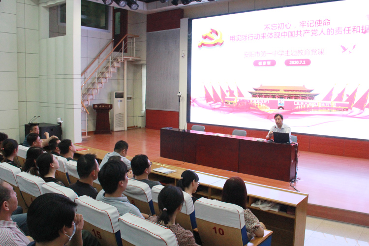 7月1日下午,我校在電教樓五樓報(bào)告廳召開紀(jì)念建黨99周年暨“七一”表彰大會,全體黨員參加了會議。 大會在莊嚴(yán)的國際歌中開始,首先對2019年度優(yōu)秀黨員進(jìn)行了表彰。隨后,黨委書記、校長崔彥軍為全體黨員上了題為《不忘初心,牢記使命——用實(shí)際行動(dòng)來體現(xiàn)中國共產(chǎn)黨人的責(zé)任和擔(dān)當(dāng)》的微黨課。 黨課中,崔校長回顧了我國建國以來在政治、經(jīng)濟(jì)和科技方面取得的重大成就,并帶領(lǐng)廣大黨員重溫共產(chǎn)黨人的初心使命,號召全體黨員同志全面貫徹黨的教育方針,勇?lián)鷮W(xué)校發(fā)展的歷史使命和責(zé)任。崔校長還向全體黨員提出殷切期望,希望大家迅速提升自己的專業(yè)素養(yǎng),不斷提高自己的工作標(biāo)準(zhǔn)和要求,服從學(xué)校工作安排并做好表率,團(tuán)結(jié)帶領(lǐng)廣大教職工做好各項(xiàng)工作,一起努力辦好安陽人民家門口的好學(xué)校。 活動(dòng)最后,全體黨員觀看了紀(jì)錄片《教師:生命與使命同行》,學(xué)習(xí)了“人民教育家”于漪的教育事跡。