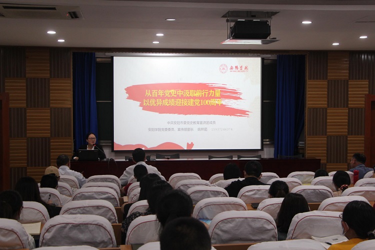 5月28日下午,市委宣講團(tuán)成員、安陽學(xué)院黨委宣傳部部長兼黨委統(tǒng)戰(zhàn)部部長姚林茹到我校進(jìn)行黨史專題宣講。我校黨委書記、校長崔彥軍,黨委委員、副校長王國卿、陳朝陽及學(xué)校黨員聆聽了報(bào)告。 姚林茹以《從百年黨史汲取前行力量 以優(yōu)異成績迎接建黨100周年》為題,從“認(rèn)真研讀黨史基本著作,全面了解黨的百年奮斗歷程”和“以史鑒今,資政育人,從黨史中汲取奮進(jìn)前行的力量”兩個(gè)方面進(jìn)行闡述,史實(shí)材料詳細(xì)、講述深入淺出。一段段感人的歷史,一個(gè)個(gè)動(dòng)情的故事,讓與會(huì)黨員重溫黨的百年光輝歷程,在學(xué)習(xí)領(lǐng)悟中堅(jiān)定理想和信念,站穩(wěn)人民立場,為群眾辦實(shí)事,用勇于攻堅(jiān)克難的精神開創(chuàng)事業(yè)發(fā)展的新局面。 現(xiàn)場黨員反應(yīng)熱烈,一致表示此次宣講透徹、深刻,為我們的黨史學(xué)習(xí)指明了方向。我校將緊緊圍繞立德樹人的根本任務(wù),真抓實(shí)干,砥礪奮進(jìn),以優(yōu)異成績慶祝建黨100周年。 |
