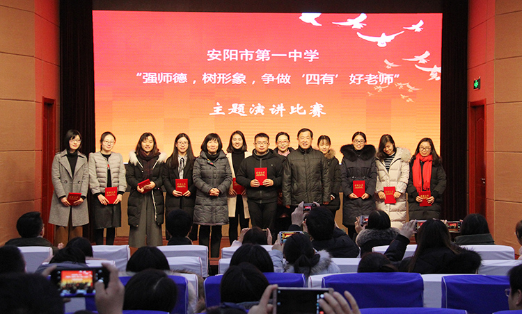 為深入學習貫徹黨的十九大精神,全面加強新形勢下師德師風建設,1月4日下午我校在實驗樓4樓報告廳舉行了“強師德,樹形象,爭做‘四有’好老師”主題演講比賽。 本次比賽以教研組為單位,每個教研組推選一名教師參加。有著20年教齡的葛曉明老師,講述了與求學路上那些好老師的動人故事,老師言行對學生產生深遠影響的切身經歷,讓現(xiàn)場的教工深受震撼。作為重回母校工作的新老師,田琳琳老師分享了自己工作以來的所見所感,從學生到老師的身份轉變,讓她更加理解教師這份職業(yè)的崇高。一句句充滿愛意的語言,一顆顆全心全意為學生的心,還有對教師職業(yè)的濃濃敬畏之情,使現(xiàn)場的老師十分感動,連寒冷的天氣似乎也變得格外溫暖。最終,語文組楊鵬程老師憑借生動幽默的語言和穩(wěn)健大方的臺風,得到評委的好評,榮獲一等獎。黃艷校長和戴志良書記為獲獎教師頒獎,并合影留念。 一所學校的發(fā)展,離不開一支高素質的教師隊伍。加強師德師風建設,是提高教師隊伍素質的根本。我校將通過各種途徑,不斷加強教師師德師風建設,努力打造一支師德高尚、作風優(yōu)良、業(yè)務精湛的教職工隊伍,辦人民群眾家門口的好學校。