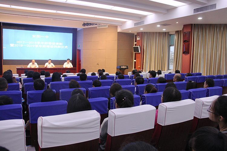 9月27日下午,我校在實驗樓4樓報告廳舉行2017—2018學年“師帶徒”表彰暨2018—2019學年“師帶徒”拜師儀式。 大會首先對上學年的優(yōu)秀指導教師進行了表彰,劉海峰等10位指導教師獲得2017-2018學年師帶徒活動一等獎。杜艷老師作為優(yōu)秀指導教師代表介紹了一年以來自己的指導經(jīng)驗;從師教師代表武肖潔結合自己的工作實際,講述了自己是在“師傅”的指導下,教育教學及學生管理方面取得快速進步的成長故事。 隨后,拜師儀式正式開始。教研處聶光明主任首先解讀了本學年“師帶徒”活動的具體要求和驗收辦法。大會宣讀了本學年“師帶徒”指導教師和從師教師名單,并向本學年“師帶徒”指導教師頒發(fā)了聘任證書。指導教師和從師教師現(xiàn)場簽訂了《師帶徒協(xié)議書》,從師教師向指導教師深情鞠躬并獻上了自己精心準備的小禮物。本學年的指導教師代表孫璐老師及青年教師代表王麗萍老師作了表態(tài)發(fā)言。 崔彥軍副校長指出,“師帶徒”活動是我校的一項優(yōu)良傳統(tǒng),對青年教師成長,促進教師間共同發(fā)展、共同進步、共同提高有著顯著的作用。崔校長希望指導教師能夠以身作則,給予青年教師全方位的指導,既嚴格要求,又關心愛護,幫助青年教師盡快成長。對于青年教師,崔校長希望大家能夠將教學工作放在首位,在工作中與學生和家長多溝通,迅速適應高中教學工作。相信通過“師帶徒”這一優(yōu)良傳統(tǒng),我校教育教學質量將再上新臺階。