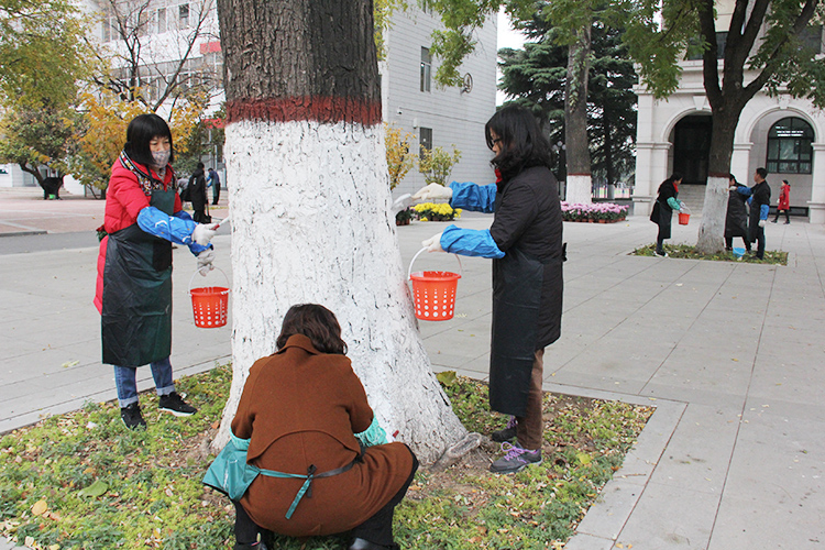 我校教職工進(jìn)行樹(shù)木刷白建校勞動(dòng) |