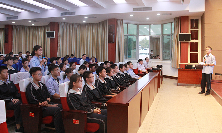 我校在實(shí)驗(yàn)樓四樓報(bào)告廳舉行觀摩班會(huì)
