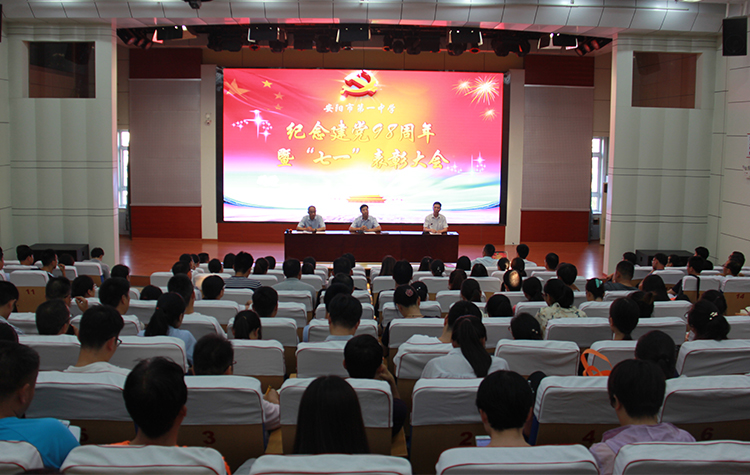 7月1日下午,我校在電教樓報(bào)告廳隆重舉行紀(jì)念建黨98周年暨“七一”表彰大會(huì),全體黨員參加會(huì)議,崔彥軍同志做了主題發(fā)言,王國卿同志上了一節(jié)黨課。大會(huì)由王國卿同志主持。 會(huì)議在雄壯的國歌聲中拉開帷幕。在第一環(huán)節(jié)中,陳朝陽同志宣讀了《關(guān)于表彰優(yōu)秀共產(chǎn)黨員的決定》,崔彥軍、王國卿、陳朝陽為受到表彰的優(yōu)秀個(gè)人頒發(fā)了榮譽(yù)證書。
