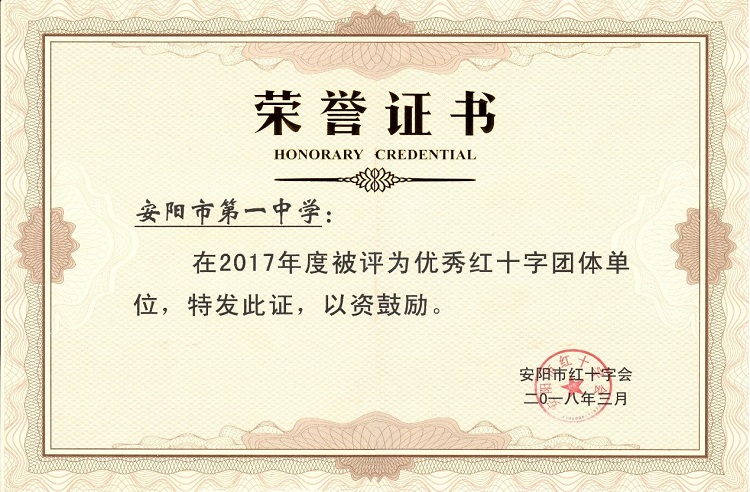 我校紅十字會(huì)被評(píng)為安陽(yáng)市2017年度優(yōu)秀紅十字團(tuán)體單位 |