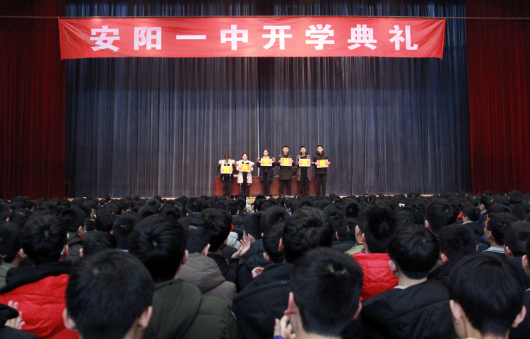 2月21日下午,我校在體育館舉行2018-2019學(xué)年第二學(xué)期開學(xué)典禮,對上學(xué)期涌現(xiàn)的優(yōu)秀班主任、先進(jìn)班集體、優(yōu)秀團(tuán)支部,以及2019屆奧賽獲獎學(xué)生等先進(jìn)集體和個人進(jìn)行了表彰。典禮由王國卿副校長主持,陳朝陽副校長宣讀了表彰決定。 王國卿副校長根據(jù)教育部最新文件精神,重申了《安陽一中學(xué)生在校一日常規(guī)》中有關(guān)禁止學(xué)生在校使用手機(jī)的補(bǔ)充規(guī)定,并針對上期末安全問題調(diào)查學(xué)生問卷中,同學(xué)們反映的部分問題進(jìn)行了通報,教育同學(xué)們要特別注意交通安全,不要在沒有安全保障的路邊攤點(diǎn)購買食品等。 崔彥軍副校長在新學(xué)期致辭中,從學(xué)校基礎(chǔ)設(shè)施改造升級、穩(wěn)步上升的教育教學(xué)質(zhì)量兩方面,回顧了我校近年來取得的成績。崔校長還強(qiáng)調(diào),作為安陽一中學(xué)子,同學(xué)們應(yīng)樹立社會精英意識、身份意識、安全意識、標(biāo)準(zhǔn)意識,以高度的社會責(zé)任感、頑強(qiáng)拼搏的精神、嚴(yán)格自律的生活態(tài)度投入到每天的學(xué)習(xí)和生活當(dāng)中,做優(yōu)秀的安陽一中人。