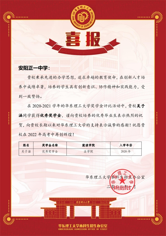 華東理工大學(xué)等多所高校向我校發(fā)來(lái)喜報(bào) |