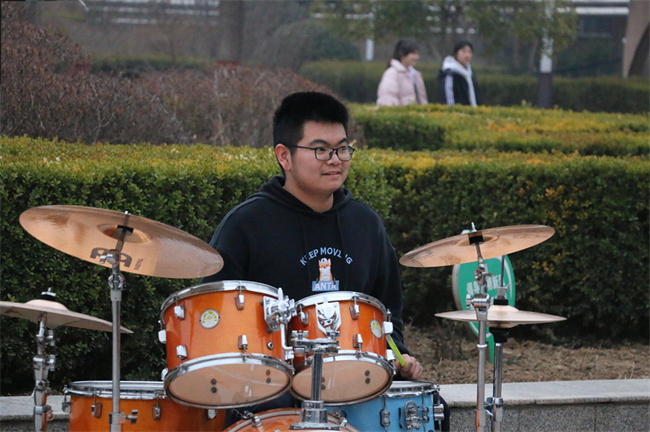 2月24日下午大課間,學(xué)校小廣場陳設(shè)的架子鼓和音響引起了同學(xué)的圍觀,一場別開生面的架子鼓快閃表演活動正在進(jìn)行。 高一(11)班徐若宸同學(xué)的鼓點響起后就迅速吸引了周圍正在自由活動的其他同學(xué)。徐若宸先后激情演奏了《Hand Clap》《遠(yuǎn)走高飛》等曲目,昂揚的旋律、瀟灑的敲擊動作,令在場同學(xué)拍手叫好。最后的無伴奏solo更是展示了其高超得架子鼓演奏技巧,將整場活動氣氛推向高潮,同學(xué)們意猶未盡,久久不愿離去。整場快閃活動展現(xiàn)了正一學(xué)子的朝氣與活力,營造了青春動感的校園氛圍。 我校將在每周五下午大課間舉行豐富多彩、形式多樣的文化活動。有意展示的同學(xué)通過教育教學(xué)辦公室報名,隨后學(xué)校將安排專業(yè)教師對節(jié)目進(jìn)行審核及指導(dǎo),提供音響等設(shè)備支持,傾力為同學(xué)們打造才華展示的舞臺,豐富同學(xué)們的文化生活,打造積極向上的校園文化環(huán)境。 |