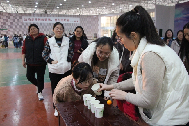 為豐富教師校園文化生活,加強(qiáng)團(tuán)隊(duì)凝聚力,在“三八”國際勞動(dòng)?jì)D女節(jié)來臨之際,3月3日下午,“三八”女神節(jié)主題活動(dòng)在學(xué)校體育館舉行。 本次活動(dòng)共設(shè)置“螃蟹”賽跑、“蒙眼”擊鼓、猜拳闖關(guān)和吹乒乓球四個(gè)項(xiàng)目,氣氛熱烈。大家在場上相互協(xié)作,奮勇爭先,在“螃蟹”賽跑項(xiàng)目中,參賽者使出渾身解數(shù),向終點(diǎn)飛奔,防止呼啦圈落地;在“蒙眼”擊鼓項(xiàng)目中,參賽者一人指揮,一人蒙眼向前奔跑直至敲鼓。不少男教職工們也來到現(xiàn)場為女教職工加油喝彩,活動(dòng)在一片歡笑聲中圓滿落幕。 我校女教職工潛心教育教學(xué)事業(yè),積極投身本職工作,為學(xué)校的蓬勃發(fā)展做出積極的貢獻(xiàn)。本次活動(dòng)展現(xiàn)了我校女教職工的風(fēng)采,增強(qiáng)教職工間的凝聚力,使廣大女教工以更加飽滿的熱情和更加昂揚(yáng)的斗志投入到工作中。 |