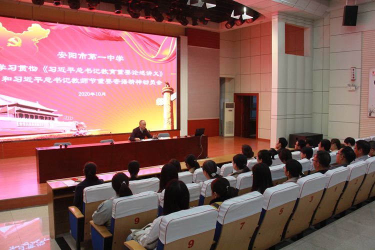 10月13日下午,我校在電教樓5樓報(bào)告廳召開學(xué)習(xí)貫徹《習(xí)近平總書記教育重要論述講義》和習(xí)近平總書記教師節(jié)重要寄語精神動(dòng)員會。黨委委員、副校長陳朝陽發(fā)表動(dòng)員講話。 陳朝陽副校長對本次活動(dòng)進(jìn)行了動(dòng)員部署,對學(xué)習(xí)貫徹工作進(jìn)行了系統(tǒng)安排。陳校長強(qiáng)調(diào),認(rèn)真學(xué)習(xí)領(lǐng)會、全面貫徹落實(shí)《講義》和習(xí)近平總書記教師節(jié)重要寄語精神,對于全面推進(jìn)新時(shí)代教師隊(duì)伍建設(shè),落實(shí)立德樹人根本任務(wù),培養(yǎng)德智體美勞全面發(fā)展的社會主義建設(shè)者和接班人,具有十分重要的意義。在本次學(xué)習(xí)中,全體教師要結(jié)合自身崗位,認(rèn)真學(xué)習(xí)討論,切實(shí)提高自身素質(zhì),為建設(shè)高素質(zhì)教師隊(duì)伍,推動(dòng)我校教育事業(yè)發(fā)展做出應(yīng)有的貢獻(xiàn)。 下一步,我校將通過自主學(xué)習(xí)、集中研討等方式,貫徹落實(shí)《講義》和習(xí)近平總書記教師節(jié)重要寄語精神,采取有效措施,健全師德建設(shè)長效機(jī)制,深化教師教育改革,完善教師管理制度,全面提升學(xué)校發(fā)展水平。