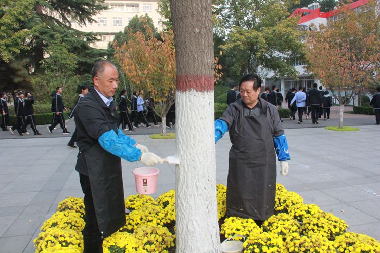 10月26日下午,我校開展建校勞動,為校園內(nèi)越冬樹木刷白。 下午4點整,教職工來到小廣場領取圍裙、手套、刷子、涂料等樹木涂白工具,隨后前往劃分的勞動區(qū)域進行刷白勞動。大家或兩人、或三人分成小組,仔仔細細地為校園里的海棠、白楊、水杉、槐樹等各種樹木刷涂刷白劑,不一會兒校園里的樹木就齊刷刷地穿上了白靴子。 使用刷白劑為樹木涂白,可以有效防止病蟲侵襲樹體,防凍害和日灼,避免早春霜害,保護樹木正常的生長。 我校于1946年創(chuàng)建于太行革命老區(qū),是一所具有光榮革命傳統(tǒng)的學校,建校勞動也作為學校的傳統(tǒng)活動保留至今。每學期,我校都組織形式多樣的建校勞動,在勞動中提升廣大教職工的主人翁意識、團結協(xié)作精神。通過這些活動,大家也體會到勞動的快樂,更加珍惜和愛護我們美麗的校園。