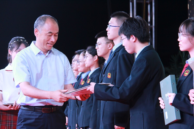 6月20日晚,我校在操場(chǎng)隆重舉行“恰同學(xué)少年”2021屆畢業(yè)生畢業(yè)典禮,800余名畢業(yè)生圓滿完成學(xué)業(yè),帶著一中的榮光揚(yáng)帆起航,逐夢(mèng)新征程。安陽(yáng)一中全體師生和部分家長(zhǎng)齊集一堂,共同見(jiàn)證這難忘的時(shí)刻。 在《我和我的祖國(guó)》的優(yōu)美鋼琴聲中,晚會(huì)正式拉開(kāi)了序幕。“有匪君子,如切如磋,如琢如磨”,詩(shī)樂(lè)舞《少年行》彰顯少年風(fēng)骨。同學(xué)們?cè)诋厴I(yè)長(zhǎng)詩(shī)《恰同學(xué)少年》中采擷收獲又抒寫(xiě)別離,期待著某年那天,相見(jiàn)仍能會(huì)心一笑。學(xué)生樂(lè)隊(duì)的原創(chuàng)歌曲《夏天永遠(yuǎn)不拜拜》燃爆舞臺(tái),將活動(dòng)推向高潮。各班用拍攝的創(chuàng)意視頻對(duì)母校說(shuō)再見(jiàn),老師們?cè)阽R頭里道出最美的祝愿,學(xué)生代表向老師們獻(xiàn)花、擁抱,感謝三年的辛勤付出。 陳朝陽(yáng)副校長(zhǎng)代表學(xué)校接受了各班贈(zèng)送給學(xué)校的畢業(yè)留言?xún)?cè),王國(guó)卿副校長(zhǎng)向?qū)W生代表贈(zèng)送校友卡和畢業(yè)紀(jì)念冊(cè)。學(xué)校后勤工作人員代表作為特別嘉賓,抽取了14名幸運(yùn)同學(xué),崔彥軍校長(zhǎng)現(xiàn)場(chǎng)為他們頒發(fā)畢業(yè)證書(shū)。 黨委書(shū)記、校長(zhǎng)崔彥軍代表學(xué)校向全體畢業(yè)生表示熱烈祝賀并發(fā)表致辭。崔校長(zhǎng)叮囑大家,一是要把讀書(shū)求知當(dāng)成自己矢志不渝的畢生追求,保持求知若渴的熱情;二是要肩負(fù)時(shí)代的使命,具有擔(dān)當(dāng)精神,把個(gè)人理想融入到國(guó)家和民族的事業(yè)之中,把小我融入到國(guó)家和民族的大我之中,讓青春在拼搏奮斗中不斷升華;三是要有積極向上的心態(tài),保持樂(lè)觀、豁達(dá)、上進(jìn),志存高遠(yuǎn),奔涌向前! |