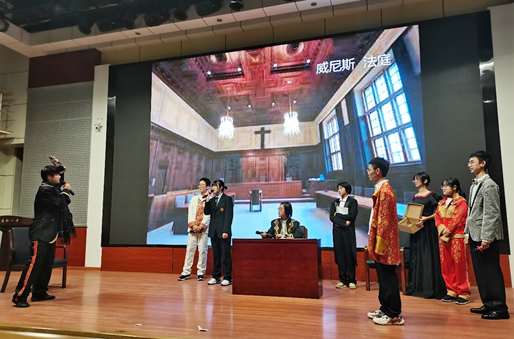 2021年12月23日,安陽一中戲劇社在電教館五樓報(bào)告廳舉行了2021-2022學(xué)年上期匯報(bào)表演?,F(xiàn)場氣氛熱烈,高潮迭起,同學(xué)們出色的表演獲得了師生的一致好評。 演出開始前十分鐘,觀眾已經(jīng)爆滿。正式匯報(bào)表演開始之前,索少陽、查樹軒同學(xué)表演的相聲《我要講規(guī)矩》,生動有趣,引得大家哄堂大笑,頻頻鼓掌。 戲劇社本次匯報(bào)表演的劇目是《威尼斯商人》。該劇是莎士比亞四大喜劇之一,全劇共三條線索,第一條線索是鮑西婭選親;第二條是杰西卡與羅蘭佐戀愛和私奔;第三條是“割一磅肉”的契約糾紛。該劇共分為五幕,同學(xué)們用精湛的演技把每個(gè)人物表演得惟妙惟肖:夏洛克的自私貪婪、吝嗇冷酷,安東尼奧的正直善良,鮑西婭的優(yōu)雅大方,巴薩尼奧的重情重義,葛來西安諾的嫉惡如仇、幽默激動,“博士”的公正機(jī)智……在一顰一笑,舉手投足之間,金錢、法律與愛情的沖突被展現(xiàn),仁愛、友誼和公正被歌頌。尤其在第四幕《法庭審判》中,夏洛克與女扮男裝的鮑西婭圍繞“要不要照約執(zhí)行處罰”展開沖突,將整部劇推向了高潮,在鮑西婭扮演的培拉里奧博士的步步引誘下,夏洛克由原來的得意忘形、百般奉承轉(zhuǎn)為敗退撤訴、驚愕絕望,正義、善良獲得勝利,惡人得到制裁。雙方劍拔弩張,劇情波瀾壯闊,扣人心弦。 歷時(shí)兩個(gè)多月的緊張準(zhǔn)備,劇本幾經(jīng)刪改,表演不斷錘煉,《威尼斯商人》的成功演出,凝聚了師生的辛勤汗水和智慧。通過本次表演,同學(xué)們得到了一次精神文化的洗禮,并在身心共育中傳播經(jīng)典,宣揚(yáng)真善美。 |