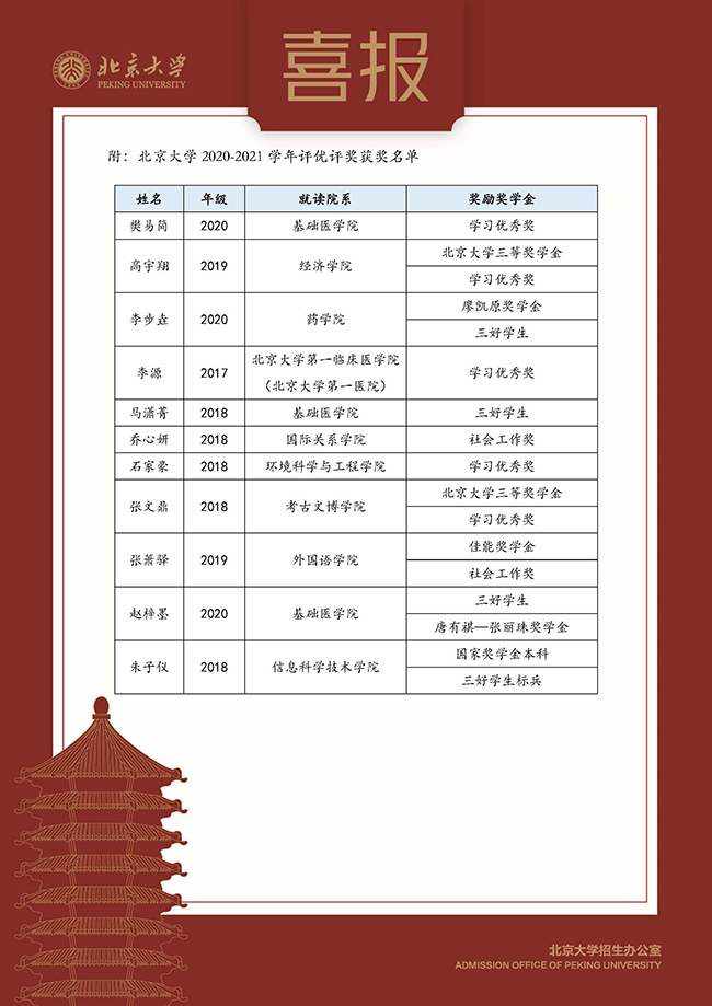11名畢業(yè)生在北京大學(xué) 2020-2021 學(xué)年評優(yōu)評獎(jiǎng)中獲獎(jiǎng) |