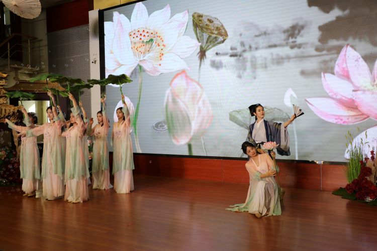“有朋自遠(yuǎn)方來,不亦樂乎”,學(xué)生為嘉賓們獻(xiàn)上了一系列的歡迎禮。熱情活力的舞獅表演,讓人感受到中華傳統(tǒng)節(jié)日的喜慶祥和;點茶表演,為遠(yuǎn)道而來的客人奉上一杯清茗,表達(dá)對嘉賓們的敬意。小廣場上,學(xué)生集體創(chuàng)作的氣勢恢宏的拼圖繪畫作品《千里江山圖》讓中外嘉賓深刻感受到中華民族的大美河山,中華文化的博大瑰麗。電教樓一樓大廳,大型古法繪制壁畫《九色鹿》、學(xué)生的扎染作品等,或圣潔神秘,或素凈高雅,無一不在默默訴說著一中學(xué)子對中華文化的踐行與傳承。 書法教室內(nèi)氣氛熱烈融洽,中外嘉賓觀賞了一中學(xué)生制作的葉脈書簽、植物水晶滴膠、手工肥皂,香薰蠟燭等特色手工藝品,精致雅趣的作品讓嘉賓贊嘆不已。嘉賓們還制作了木版年畫、烙畫,剪紙作品,與一中學(xué)生現(xiàn)場互動,共同體驗,在一印一拓、一繪一剪中致“非遺”,敬“匠心”。 報告廳內(nèi),崔校長致辭,向遠(yuǎn)道而來的各位嘉賓表示熱烈的歡迎。師生原創(chuàng)國風(fēng)舞臺劇《芙萍錄》為大家?guī)砹艘粓鋈A麗的視聽盛宴,唯美的意境,清新的唱詞,優(yōu)雅的民族舞蹈,讓我們感受到了傳統(tǒng)文化震撼古今的力量,現(xiàn)場嘉賓頗受感動,頻頻爆發(fā)出熱烈的掌聲。李山川教授以《藉以漢字,神交古人》為題,為大家?guī)碇v座,通過生動的講解,有趣的游戲互動,讓嘉賓們和學(xué)生們更真切地感受到漢字的魅力。 文字為媒,譜寫傳統(tǒng)之美;大會為介,共享文化盛宴。在古都安陽,中外嘉賓、一中學(xué)子進(jìn)行了一場穿越時空的文化會晤,沉醉于中華傳統(tǒng)文化之中,探尋漢字之源,領(lǐng)略漢字之韻,感受漢字力量。作為甲骨文故鄉(xiāng)的孩子,一中學(xué)子必定大力傳承、弘揚中華優(yōu)秀傳統(tǒng)文化,堅定文化自信,用我們的力量讓漢字進(jìn)一步走向世界,讓中華文化走向世界。
