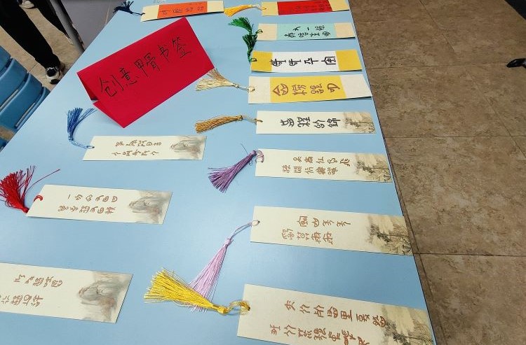 進入教室,首先看到的是同學們親手制作的“甲骨文書簽”。新年伊始,萬象更新,書簽上有“歲歲平安”“財源滾滾”“龍年大吉”之類的美好期許,有“金榜題名”“前程似錦”“天高任鳥飛,海闊憑魚躍”之類的勵志名言。來觀展的同學們無不感到新奇有趣,拿起筆也開始在空白的書簽上臨摹起來。 接下來展示的是幾片小小的“甲骨”。“甲骨刻寫”就是用刻刀在骨片上刻字。你可以看到甲骨文字“牛”“龍”“日”“朝”等常見字。一把刻刀,一片甲骨,與先祖共寫一個“字”。同學們仿佛穿越千年,與古人相遇,感受到了古老世界的美好和神秘。 最有趣的是同學們自創(chuàng)的“趣味甲骨文表情包”。甲骨文字與新潮時尚相結合,生動形象,詼諧幽默。同學們盡情想象,激情創(chuàng)作;觀眾們熱情圍觀,拍手稱贊。 “象形”“指示”“會意”“形聲”“轉(zhuǎn)注”“假借”,六書是后人對漢字進行分析而歸納出來的系統(tǒng),也是最早的關于漢字構造的系統(tǒng)理論。社團成員以“六書”為主題,設計黑板報。心靈手巧的同學們把象形字“羊”“龍”剪成窗花貼到黑板報上。寓教于樂、融學于趣、化教于心。 教室左右的墻面上展示的是同學們的書畫作品,同學們在淡淡的墨香氛圍中感受傳統(tǒng)文化的魅力。在本次活動中,同學們領悟到了古人的智慧和創(chuàng)造力,了解了古人對自然、社會等各個方面的認識和思考。 |