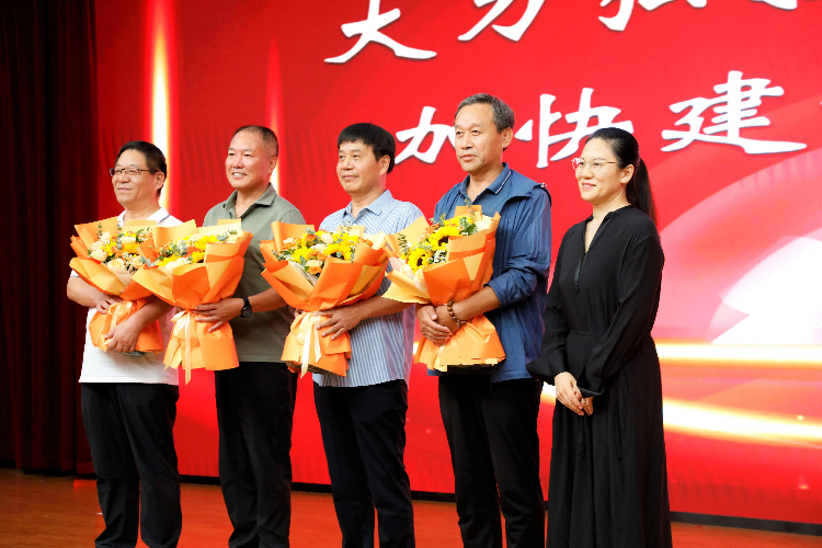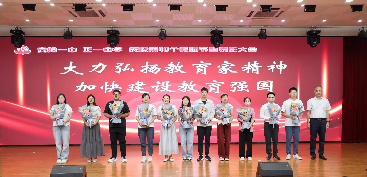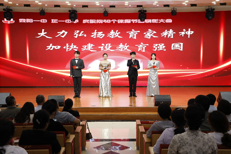 為深入學(xué)習(xí)貫徹習(xí)近平總書記系列重要講話精神,弘揚(yáng)教育家精神,推進(jìn)教師隊伍建設(shè),2024年9月10日下午,我校隆重舉辦第40個教師節(jié)慶祝暨表彰大會。 大會在《歡欣鼓武》的表演中拉開帷幕,參加演出的老師們個個精神飽滿、動作嫻熟、活力四射,瞬間點(diǎn)燃全場。 黨委委員、副校長徐珍玲致辭中,代表校黨委向全體兢兢業(yè)業(yè)、無私奉獻(xiàn)的老師們致以崇高的敬意和誠摯的祝福!徐校長指出,當(dāng)老師,既是一條漫長而充滿挑戰(zhàn)的道路,也是一條與懷揣夢想的青春少年并肩同行的道路。正是因?yàn)槔蠋焸兊牟恍概湍冻?,才有了學(xué)校的蓬勃發(fā)展,桃李滿天。徐校長強(qiáng)調(diào),教育家精神是對教育事業(yè)的無限熱愛,對學(xué)生成長的深切關(guān)懷,對教育創(chuàng)新的不懈追求。她勉勵全體教師要繼續(xù)弘揚(yáng)教育家精神,為黨育人,為國育才,憑借過硬的專業(yè)素養(yǎng),淵博的學(xué)識水平,深沉的仁愛之心,堅守教育初心,傳承光榮使命,為教育事業(yè)的蓬勃發(fā)展傾盡全力。 黨委委員、副校長陳朝陽宣讀《安陽市第一中學(xué)關(guān)于對2023-2024學(xué)年先進(jìn)集體和個人進(jìn)行表彰的決定》。在頒獎環(huán)節(jié),學(xué)校對先進(jìn)教研組、優(yōu)秀教師、優(yōu)秀教育工作者、優(yōu)秀青年教工、教學(xué)成績優(yōu)勝獎獲得者等先進(jìn)集體和個人頒發(fā)了證書和獎品,現(xiàn)場氣氛熱烈。 在教師代表發(fā)言環(huán)節(jié),優(yōu)秀教師代表申素紅在發(fā)言中動情講述身邊優(yōu)秀教師的許多難忘往事,表示在未來的日子里,要發(fā)揚(yáng)教育家精神,秉持信念、大道篤行,與人民共情、與國家同心、與時代同行,跨越山海,創(chuàng)造一中更美好的未來!青年教師代表梁雨靜回憶了自己工作后的成長歷程,分享了育人的所感所悟,表達(dá)了繼續(xù)發(fā)揚(yáng) “敬業(yè)愛生、踏實(shí)嚴(yán)謹(jǐn)、精益求精”的教風(fēng),將一中優(yōu)良傳統(tǒng)繼承發(fā)揚(yáng)光大! 大會播放了專門為最后一次參加教師節(jié)慶祝大會臨近退休的4位教師錄制的采訪視頻《提燈引路,育夢成光》,展現(xiàn)了他們?yōu)榻逃聵I(yè)和學(xué)校發(fā)展傾注滿腔熱情,為學(xué)生成長和個性發(fā)展付出智慧和辛勞,深深感染了現(xiàn)場教師。 在詩朗誦《師說》節(jié)目中,我校老中青年三代教師傾情演出,鏗鏘有力、擲地有聲表達(dá)了培根鑄魂育新人的初心與決心。歌曲《我喜歡》抒情動人,器樂曲《青花瓷》悠揚(yáng)古樸,獨(dú)唱《老師 我總是想起你》深情滿滿,讓在場教職工真切地感受到了教師的偉大與光榮。大會在小合唱《希望你被這個世界愛著》溫馨旋律中落下帷幕。 我校全體教職工將堅守育人初心,厚植愛校榮校情懷,以更加飽滿的精神狀態(tài)、更加昂揚(yáng)的奮斗姿態(tài),積極投身于學(xué)校發(fā)展的各項(xiàng)事業(yè)之中,為教育強(qiáng)國筑牢基石,書寫教育強(qiáng)國建設(shè)的一中答卷。