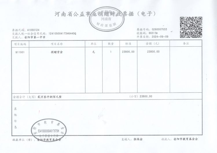 根據(jù)安陽市教育局、安陽市教育基金會《關(guān)于開展2024年“慈善一日捐”活動的通知》精神,我校組織開展2024年“慈善一日捐”活動,全體教職工積極響應(yīng),共231人次參與捐款,籌集善款23800元,所有善款統(tǒng)一交至安陽市慈善總會。