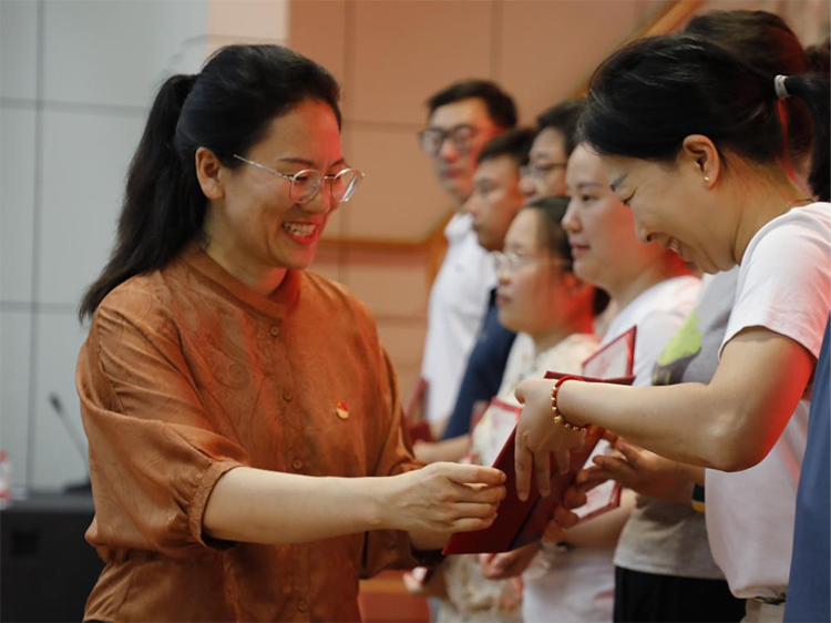 為慶祝中國共產(chǎn)黨成立104周年,深入學(xué)習(xí)貫徹習(xí)近平新時(shí)代中國特色社會主義思想和黨的二十大和黨的二十屆三中全會精神,激勵全體黨員教師牢記初心使命、凝聚奮進(jìn)力量,6月30日下午,安陽市第一中學(xué)在電教樓報(bào)告廳隆重舉行慶祝中國共產(chǎn)黨成立104周年暨“七一”表彰大會。 大會在莊嚴(yán)的國歌聲中拉開帷幕。黨委委員、副校長董繼軍宣讀校黨委表彰決定,校領(lǐng)導(dǎo)為2024年度優(yōu)秀共產(chǎn)黨員頒發(fā)了榮譽(yù)證書。在黨委委員、副校長陳朝陽領(lǐng)誓下,與會黨員重溫入黨誓詞,鏗鏘有力的誓言回蕩在會場,表達(dá)了全體黨員對黨的無限忠誠和為教育事業(yè)奮斗終身的堅(jiān)定信念。黨委書記徐珍玲同志在講話中強(qiáng)調(diào),當(dāng)前全黨正在開展深入貫徹中央八項(xiàng)規(guī)定精神學(xué)習(xí)教育,全體黨員要時(shí)刻牢記黨員身份,以黨員標(biāo)準(zhǔn)嚴(yán)格要求自己,嚴(yán)守紀(jì)律紅線,始終保持清正廉潔的政治本色。她指出,作為黨員教師,要善于用黨的科學(xué)理論來指導(dǎo)教育教學(xué)實(shí)踐,注重學(xué)生的思想引領(lǐng)和價(jià)值塑造,幫助他們“扣好人生的第一??圩?rdquo;,努力培養(yǎng)更多讓黨放心、愛國奉獻(xiàn)、擔(dān)當(dāng)民族復(fù)興重任的時(shí)代新人。她強(qiáng)調(diào),把課上好是教師最崇高的師德,作為教師,要主動鉆研教材,走進(jìn)學(xué)生,加強(qiáng)學(xué)習(xí),不輕慢課堂、不應(yīng)付學(xué)生,把課堂真正變成立德樹人的主陣地。她要求全體黨員牢記“三個(gè)務(wù)必”,自覺踐行“教育家精神”,推進(jìn)學(xué)校高質(zhì)量發(fā)展,為建設(shè)教育強(qiáng)國貢獻(xiàn)力量。 優(yōu)秀黨員代表張志兵、石姍姍在會上發(fā)言。張志兵老師表示作為新時(shí)代的黨員教師,會時(shí)刻以高標(biāo)準(zhǔn)要求自己,將初心化為行動,把使命扛在肩頭。在這個(gè)充滿希望的校園深耕細(xì)作,為培育堪當(dāng)民族復(fù)興重任的時(shí)代新人而不懈奮斗!石姍姍老師表示在工作中深刻體會到,教育不僅是職業(yè),更是一份托起未來的責(zé)任。今后要以更加飽滿的熱情、更加務(wù)實(shí)的作風(fēng),在教育事業(yè)中書寫對黨的忠誠,用優(yōu)異的成績向黨的生日獻(xiàn)禮! 表彰大會結(jié)束后,黨委書記徐珍玲同志以《深入學(xué)習(xí)貫徹中央八項(xiàng)規(guī)定精神》為題,為全體黨員講授專題黨課。 我校將繼續(xù)高舉習(xí)近平新時(shí)代中國特色社會主義思想偉大旗幟,秉承黨的教育方針,全面推進(jìn)黨建與教育教學(xué)工作深度融合,以更加飽滿的熱情、更加務(wù)實(shí)的作風(fēng)投入工作,以實(shí)際行動為黨旗增光添彩,為辦好人民滿意的教育貢獻(xiàn)力量。 |