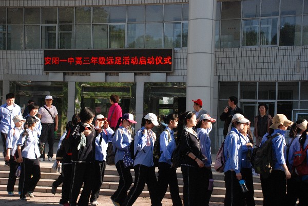 5月11日,安陽一中和安陽一中分校組織2013屆高三學子進行了“挑戰(zhàn)自我,輝煌六月”大型遠足活動。具體路線由安陽一中和分校出發(fā)至湯陰毓秀園,全程23公里。組織這次活動的目的,是為了讓面臨高考的學生暫時放松一下身心,緩解高考壓力;同時也為了鍛煉學生的體魄,磨練意志,挑戰(zhàn)自我,促進協(xié)作,為即將到來的高考做一次精神淬火。