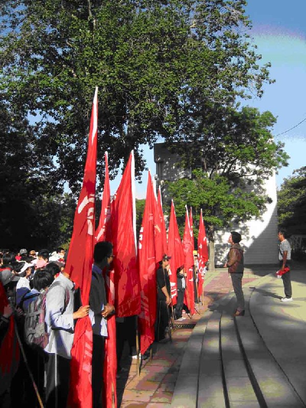 上午7點,黃艷校長做了動員講話。7點半,同學們在校旗、團旗和班旗的指引下,以班級為建制,隊列整齊,精神昂揚地向目的地進發(fā)。