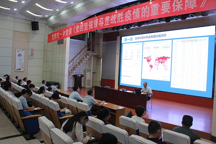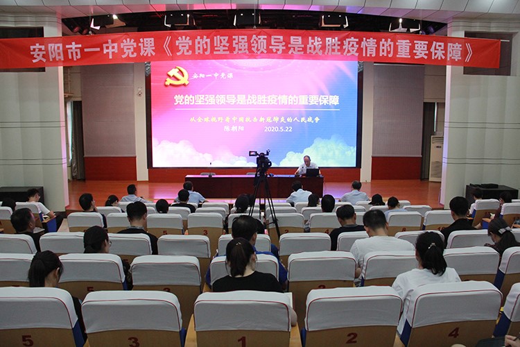 2020年5月22日下午,我校黨委委員、副校長陳朝陽在電教樓5樓報告廳為一中全體黨員作了題為《黨的堅強領導是戰(zhàn)勝疫情的重要保障》的主題黨課,從全球視野展現(xiàn)中國抗擊新冠肺炎的人民戰(zhàn)爭。安陽市第一中學 黨課分為全球抗疫形勢及我國抗疫工作回顧,中國取得初步勝利的原因及防疫工作的長期性、復雜性,新冠肺炎疫情工作對世界的影響,從疫情得到的啟示四個部分。李文亮、張靜靜、段正澄、徐輝……這些平凡而偉大的抗議英雄的名字和故事,讓大家深受感動。黨員們表示從他們的身上汲取了力量,也更堅定了戰(zhàn)勝新冠肺炎疫情的信心與勇氣。安陽市第一中學 陳校長還為大家講述了安陽一中人積極投入抗疫的故事。在停課不停學的日子里,老師們通過網(wǎng)上教學,在家備課錄課,清早打卡,深夜答疑;電教老師全天候提供視頻制作技術支持;總務處四處籌措防疫物質(zhì),進行場地消毒……這些安陽一中人點點滴滴的努力,使我校開學各項工作有序進行,受到了到社會各界的廣泛關注和肯定。安陽市第一中學 全體黨員仔細聽講,認真記錄,達到了良好的學習效果。我校將繼續(xù)加強黨員學習教育,讓黨員們不斷增強“四個意識”,堅定“四個自信”,做到“兩個維護”,堅定信念、勇于擔當,為戰(zhàn)勝疫情貢獻自己的力量。 |