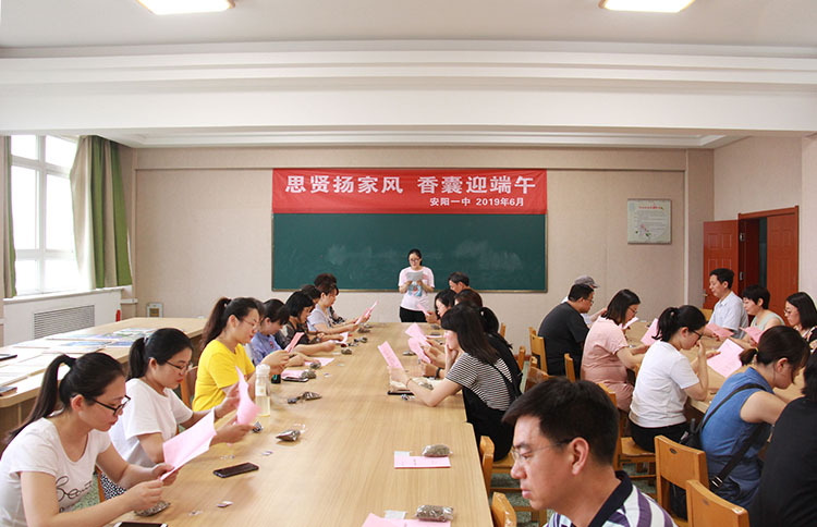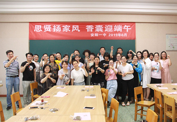 在傳統(tǒng)節(jié)日“端午節(jié)”前夕,我校在電教樓書法教室開展“思賢揚家風,香囊迎端午”節(jié)日慶?;顒樱顒觾热莅ǎ航?jīng)典詩篇誦讀,家風家訓分享,巧手學做香囊等,下午沒課的近五十名教職工參加了此次活動。濃濃的校園情伴著書香、飄著艾葉香、帶著好家風“裹”進所有參加活動人的記憶中。 活動開始,崔彥軍副校長首先致辭,祝福大家端午安康。接著主持人帶領在座全體教師開展了經(jīng)典誦讀活動,并分享了歷史上著名的好家風、好家訓、好故事。在巧手做香囊環(huán)節(jié),主持人一邊介紹香囊的制作方法,一邊動手示范。很快,一個個立體飽滿又精致的中草藥香囊就完成了,一時間空氣里彌漫著清幽香氣,沁人心脾。大家紛紛拿著做好的香囊拍照留念,臉上掛滿了笑容。
