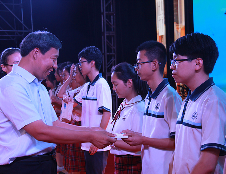 樹蔭滿地,石榴花開。又到一年畢業(yè)季。6月20日晚,我校“一中·藍”2019屆畢業(yè)典禮在操場隆重舉行,全體師生、2019屆學(xué)生的家長以及我市部分初中的在校學(xué)生,一起見證了這一難忘時刻。 在大家的歡呼聲中開場舞《not today》引爆了全場,隨后深情的畢業(yè)詩歌朗誦《我們離開了安陽一中》,又讓人感動不已。同學(xué)們用原創(chuàng)的長詩、自制的視頻和高中生活說再見,視頻上的點點滴滴都是他們對學(xué)校的回憶。老師們也為同學(xué)們送上最真誠的祝福,師生依依惜別,不舍的惆悵在空氣中彌漫。 陳朝陽副校長代表學(xué)校接受了各班贈送給學(xué)校的畢業(yè)留言冊,王國卿副校長向?qū)W生代表贈送校友卡和畢業(yè)紀念冊。學(xué)校后勤工作人員代表作為特別嘉賓,抽取了14名幸運同學(xué),崔彥軍副校長現(xiàn)場為他們頒發(fā)畢業(yè)證書。 最后,崔彥軍副校長致辭,向2019屆畢業(yè)生和畢業(yè)生家長表示祝賀,強調(diào)了我校的“以人為本、全面育人”的教育理念,強調(diào)了勞動的重要性,勉勵同學(xué)們繼續(xù)發(fā)揚我校“崇尚科學(xué)、志存高遠、不尚浮華”的優(yōu)良學(xué)風(fēng),希望大家能堅持讀好書,成為敢于擔(dān)當勇于奉獻、具有家國情懷的人,在未來的道路上,能夠繼續(xù)沿著求真理、悟道理、明事理的方向前進,成長為一個對社會、對國家更有用的人。 離別,是為了更好的出發(fā)。相信2019屆的同學(xué)們帶著美好的回憶和母校的祝福,會走的更高更遠,天高地闊,馳騁翱翔!