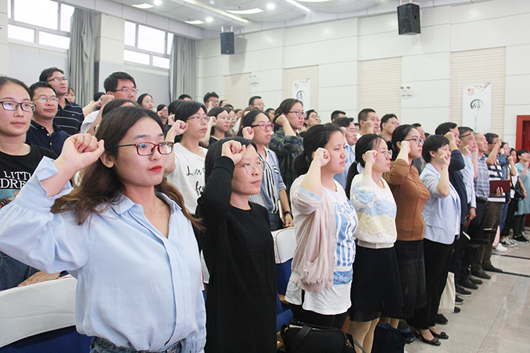 9月23日下午,我校在電教樓5樓報(bào)告廳召開(kāi)“不忘初心、牢記使命”主題教育動(dòng)員部署會(huì)議。我校黨委書(shū)記、校長(zhǎng)崔彥軍對(duì)主題教育活動(dòng)的開(kāi)展作了動(dòng)員部署。 會(huì)議強(qiáng)調(diào),一是要充分認(rèn)識(shí)和準(zhǔn)確理解“不忘初心、牢記使命”主題教育的目標(biāo)任務(wù),增強(qiáng)干事創(chuàng)業(yè)敢于擔(dān)當(dāng)?shù)男判?,在推進(jìn)事業(yè)發(fā)展上持續(xù)奮斗。二是要深刻領(lǐng)會(huì)和全面踐行“不忘初心、牢記使命”主題教育的部署要求,將學(xué)習(xí)教育、檢視問(wèn)題、整改落實(shí)貫穿全程。三是要切實(shí)增強(qiáng)開(kāi)展“不忘初心、牢記使命”主題教育活動(dòng)的責(zé)任感緊迫感,加強(qiáng)組織領(lǐng)導(dǎo),以上率下,壓緊壓實(shí)責(zé)任。 會(huì)議指出,全體黨員要高舉習(xí)近平新時(shí)代中國(guó)特色社會(huì)主義思想偉大旗幟,扎實(shí)開(kāi)展好“不忘初心、牢記使命”主題教育,持續(xù)錘煉忠誠(chéng)干凈擔(dān)當(dāng)?shù)恼纹犯?,奮力推進(jìn)教育事業(yè)高質(zhì)量發(fā)展,為助力中原更加出彩,為迎接新中國(guó)成立70周年作出應(yīng)有貢獻(xiàn)。 與會(huì)人員還共同重溫了入黨誓詞,學(xué)習(xí)觀看了習(xí)近平總書(shū)記在河南就經(jīng)濟(jì)社會(huì)發(fā)展和“不忘初心、牢記使命”主題教育情況進(jìn)行考察調(diào)研的視頻。