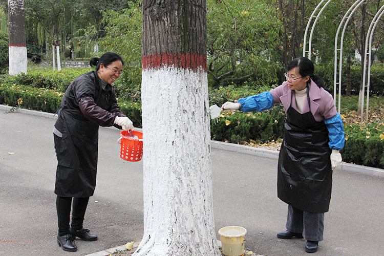 我校教職工進行樹木刷白建校勞動 |