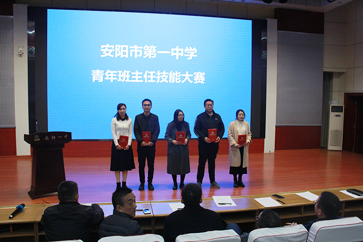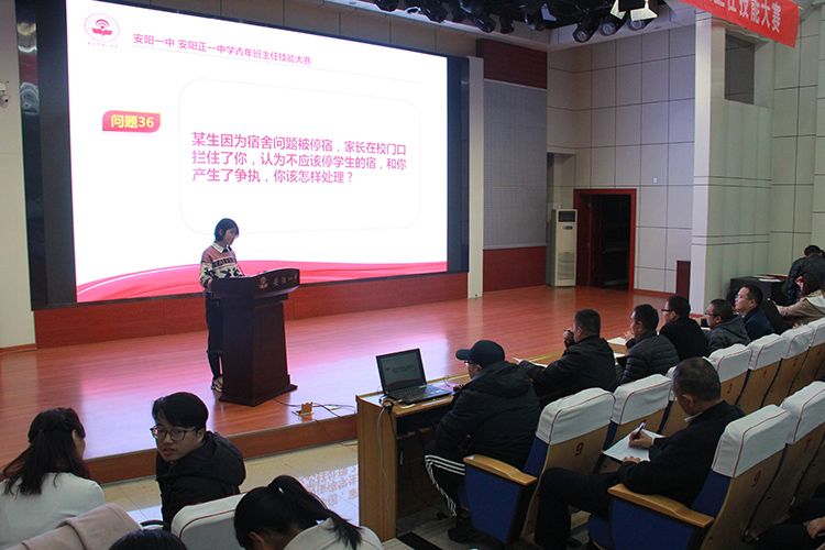 11月11日下午,我校第二屆青年班主任技能大賽教育情境答辯環(huán)節(jié)比賽在電教樓五樓會議室順利舉行。校長崔彥軍、副校長陳朝陽,高一、二年級全體教師觀摩了比賽。最終經(jīng)過激烈角逐梁冰潔、胡錦華兩位老師獲得一等獎,王楠、蘆崢、周芳、張譯丹、王婷婷五位老師獲得二等獎。 本次大賽分“工作匯報”和“教育情境答辯”兩輪進行,由資深班主任和部分中層干部擔(dān)任評委,選手總成績?yōu)榈谝惠喓偷诙喅煽冎停鶕?jù)總成績,一中校區(qū)評選出一等獎兩名,二等獎5名。11月1日競賽方案下發(fā)后,15名參賽選手經(jīng)過精心準(zhǔn)備,于 11月7日、8日下午分年級在綜合樓五樓506會議室分別作以“安陽一中學(xué)生身份意識”培養(yǎng)為主題的工作匯報,選手們根據(jù)自己的理解和認(rèn)識,暢談自己對學(xué)生進行教育的心得、規(guī)劃等,對“安陽一中學(xué)生身份意識”的“內(nèi)涵和外延”都進行了有益梳理,并分享了一些比較成功的案例。 在第二輪的教育情景答辯環(huán)節(jié)中,每位選手隨機抽取教育情景問題進行了現(xiàn)場答辯。選手們在有限的時間內(nèi),細致思考,答辯現(xiàn)場妙語連珠,處處體現(xiàn)著我校“敬業(yè)愛生,踏實嚴(yán)謹(jǐn),精益求精”的教風(fēng),展現(xiàn)了過硬的業(yè)務(wù)素養(yǎng)。崔彥軍校長在本環(huán)節(jié)的點評中指出:“班主任技能大賽要堅持做,如果堅持做下去肯定會提升我校班級管理水平;無論是班主任還是非班主任,大賽設(shè)定的36個問題在我們的教育教學(xué)中都非常有代表性,處理好會形成班級管理的合力。” 崔校長強調(diào),班主任要格外重視班級管理,管理好的班級班風(fēng)正、學(xué)風(fēng)濃、問題少,各方面工作突出。他要求班主任要提升班級管理水平,首先要向書本、向優(yōu)秀班主任學(xué)習(xí),不斷提升自己,學(xué)校將會利用一切機會將優(yōu)秀的班主任推向市級、省級的更大平臺;其次班主任要有標(biāo)準(zhǔn)意識,落實教學(xué)常規(guī)各項要求,正確處理好師生、家校之間的關(guān)系。 我校向來重視推動班主任的專業(yè)化發(fā)展,致力于建立一支專業(yè)強、業(yè)務(wù)精的德育管理隊伍,本次大賽為全體班主任提供了一個展示才華、交流學(xué)習(xí)、提高能力的機會,為推動我校班主任隊伍建設(shè)注入了新的動力。
