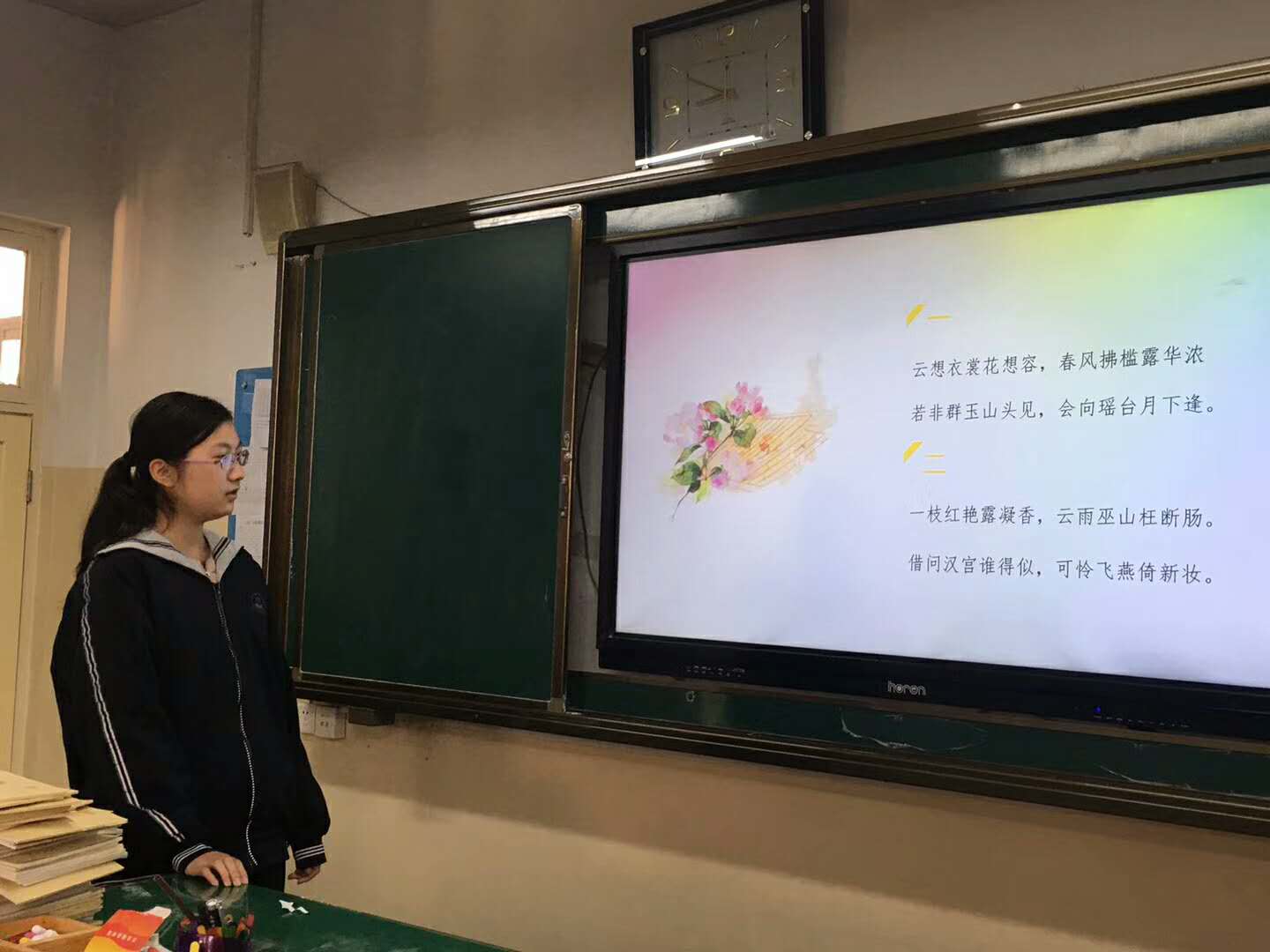 我們的《經(jīng)典詠流傳》:有古典詩(shī)詞翻唱的流行歌曲,有同學(xué)們用歌曲自己改編的詩(shī)詞;有清唱,有自彈自唱;有歌曲,有戲曲;有民族唱法,有流行唱法。同學(xué)們用音樂(lè)傳達(dá)對(duì)詩(shī)詞的熱愛(ài)!