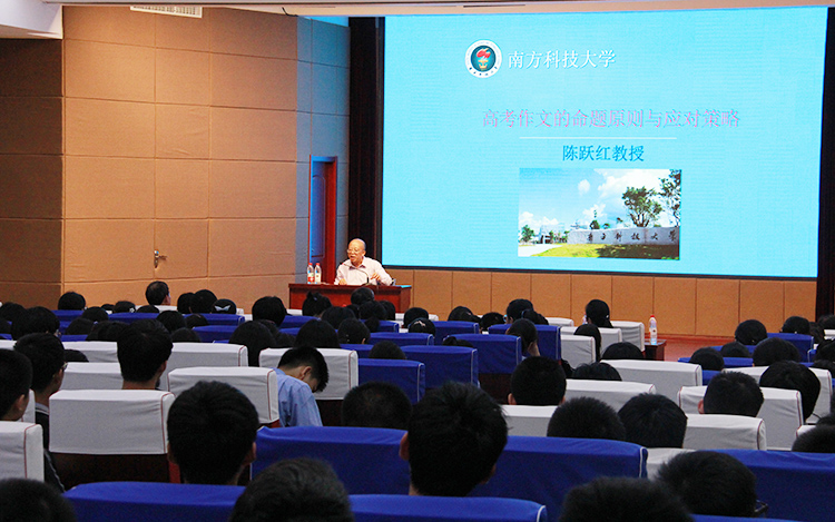 4月20日下午,南方科技大學(xué)陳躍紅教授在我校實(shí)驗(yàn)樓4樓報(bào)告廳為部分師生帶來(lái)了題為《高考作文的命題原則與應(yīng)對(duì)策略》的講座。 講座中,陳躍紅教授強(qiáng)調(diào),“立德樹人”是學(xué)校育人的標(biāo)準(zhǔn),包括“成才”和“成人”兩個(gè)方面,這也是當(dāng)前高考語(yǔ)文作文測(cè)試中重點(diǎn)考察的方向。在行文時(shí)要體現(xiàn)自己的關(guān)注和思考,呈現(xiàn)大格局和大視野。陳教授授課風(fēng)趣幽默,精彩之處贏得現(xiàn)場(chǎng)陣陣掌聲。 陳躍紅教授是南方科技大學(xué)講座教授,人文中心主任,樹禮書院院長(zhǎng)。曾任北京大學(xué)比較文學(xué)與世界文學(xué)人文特聘教授,校務(wù)委員,北大中文系主任。2017年3月19日,我校被南方科技大學(xué)授予優(yōu)秀生源基地稱號(hào),雙方簽署了合作協(xié)議,建立了良好的合作機(jī)制,為我校培養(yǎng)具有科學(xué)精神與創(chuàng)新品質(zhì)的優(yōu)秀人才起到了積極的促進(jìn)作用。