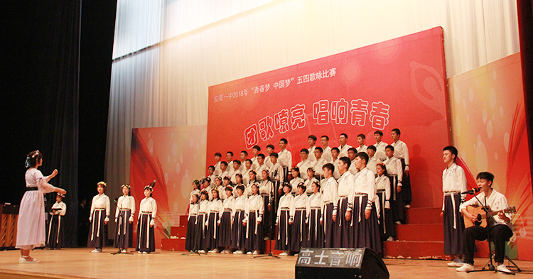 為大力弘揚(yáng)社會主義核心價值觀,紀(jì)念五四運(yùn)動99周年,4月26日和27日下午,我校一、二年級兩個組別在體育館舉行2018年“青春夢·中國夢”五四歌詠比賽。 高一、高二年級共計(jì)28個班級參與了此次比賽。經(jīng)過精心的排練和準(zhǔn)備,同學(xué)們用整齊別致的服裝、穩(wěn)健的臺風(fēng)和嘹亮的歌聲點(diǎn)燃了整個校園。為了達(dá)到更好的演出效果,同學(xué)們還各出奇招,將京劇表演、現(xiàn)代舞、民族舞、武術(shù)、說唱等元素融入到合唱表演中來,獨(dú)具匠心的編排和激情四射的表演,讓整場演出精彩紛呈、高潮迭起、掌聲不斷。經(jīng)過激烈的角逐,最終高一年級5班、12班,高二年級4班、11班拔得頭籌,斬獲一等獎。 歌詠比賽豐富了同學(xué)們的校園文化生活,帶來了音樂的洗禮和藝術(shù)上的熏陶,進(jìn)一步增強(qiáng)了同學(xué)們的集體榮譽(yù)感和班級凝聚力,展現(xiàn)了我校學(xué)生積極向上、朝氣蓬勃的精神面貌。