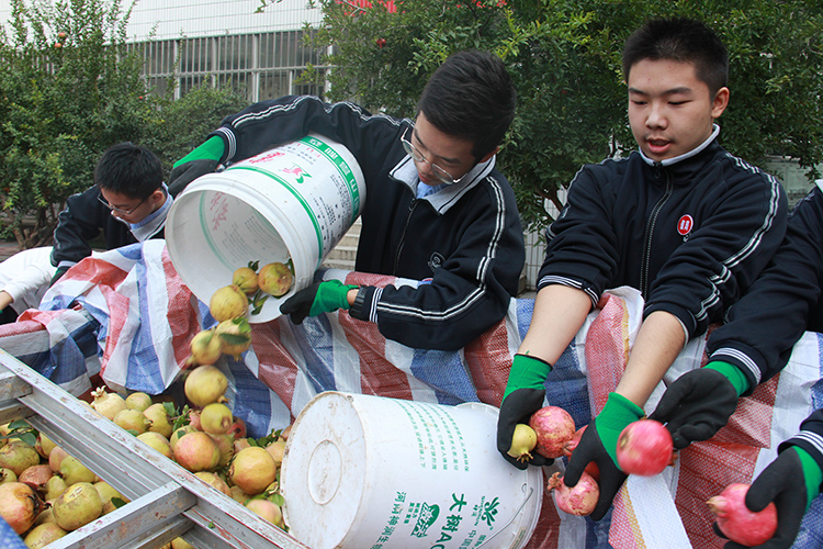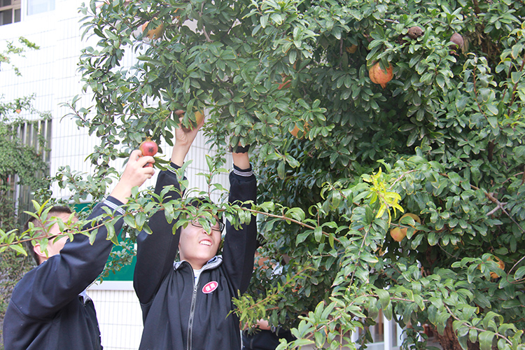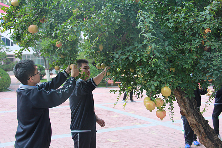 金秋送爽,碩果飄香。安陽一中校園里的石榴成熟了,等不及采摘的果實裂開了嘴兒,像是一朵朵盛開的鮮花,讓人垂涎欲滴。 9月27日早晨,值周班綠化組的同學們在老師的帶領(lǐng)下開始了今年的采摘工作。同學們分工合作,你扶梯子我摘果兒,一個多小時,就把樹上的果實全部采摘了下來。清點之后,學校將把這些果實將會分到各班,讓同學們一起品嘗收獲的喜悅。 學校的這些石榴,從開花到結(jié)果,師生愛護有加,從未出現(xiàn)亂采亂摘的現(xiàn)象。小小一枚石榴,見證了同學們的文明素養(yǎng),也彰顯了學校的管理底蘊,不僅使同學們感受到豐收的景象,體驗到勞動的快樂,也體會到了分享的喜悅。