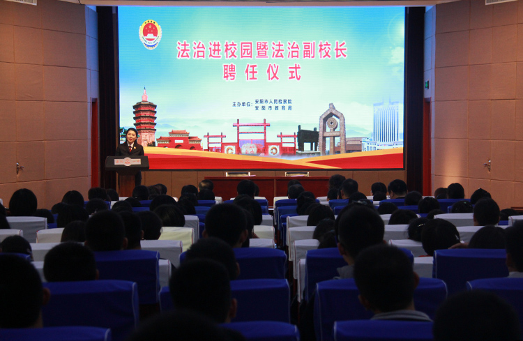 10月25日下午,市人民檢察院與市教育局法治進校園暨法治副校長聘任儀式在我校實驗樓4樓報告廳舉行。副市長祝振玲,市人民檢察院黨組書記、檢察長常鳳琳,市教育局局長王愛宏,團市委書記高雁,市婦聯(lián)主席牛建芳,市檢察院黨組副書記、副檢察長閆關成,我市部分人大代表、政協(xié)委員,及部分中小學校長出席了本次活動。 聘任儀式上,祝振玲副市長做了熱情洋溢的致辭,并為常鳳琳檢察長頒發(fā)了安陽市第一中學法治副校長聘書。常檢察長作為我校法治副校長發(fā)言,表達了對青少年健康成長問題的殷殷關切,表示將于我校開展深度合作,深入推進法治進校園工作。最后,常檢察長代表市檢察院向我校捐贈了圖書和運動器材。 為確保青少年法治教育工作落到實處,規(guī)范法治副校長工作制度,會上王愛宏局長與閆關成副檢察長會簽了《關于聯(lián)合開展向全市中小學選派法治副校長活動的意見》。 儀式結(jié)束后,檢察院的法制宣講團還為我校學生送上了題為《青春不容侵犯》的精彩法治課,圍繞校園欺凌、網(wǎng)絡安全等開展普法教育,內(nèi)容豐富、形式新穎,學生反應熱烈。 我校十分重視學生的全面發(fā)展,每學期都為同學們開展法制報告會,增強大家的法律意識,推進安全、文明校園建設。