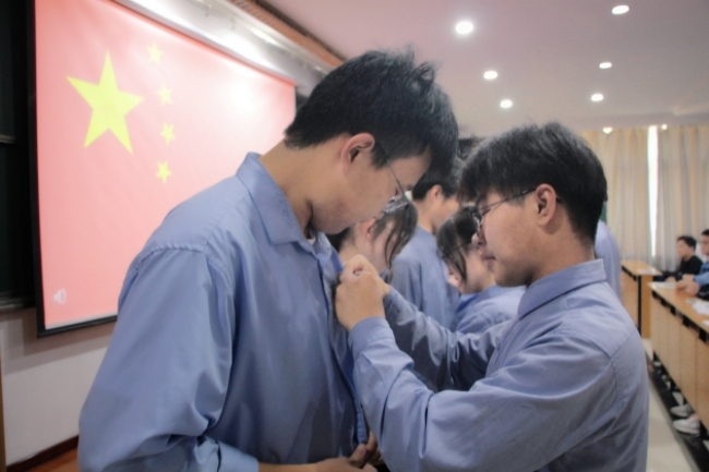 “我們是五月的花海,用青春擁抱時(shí)代……”5月24日下午,青春嘹亮的共青團(tuán)團(tuán)歌《光榮啊,中國共青團(tuán)》飄蕩在二樓合班教室,安陽正一中學(xué)2023年集中入團(tuán)儀式暨主題團(tuán)課在此隆重舉行。 伴隨著神圣的國歌,入團(tuán)儀式正式開始。老團(tuán)員為新團(tuán)員佩戴團(tuán)徽后,各位新團(tuán)員懷著對(duì)共青團(tuán)的向往與崇敬,在團(tuán)總支書記王碩涵同學(xué)的帶領(lǐng)下,舉起右拳,莊嚴(yán)宣誓,詮釋著新團(tuán)員光榮的時(shí)代擔(dān)當(dāng)。 學(xué)校團(tuán)委書記、教育教學(xué)辦公室主任胡永華老師主講題為“躬身入局,做新時(shí)代紅旗渠精神踐行者”的團(tuán)課。他用“人墻截流”“平山移石”的案例,講述了紅旗渠建造之艱難。他希望同學(xué)們可以摒棄驕嬌二氣,踐行吃苦耐勞、自力更生、艱苦奮斗的紅旗渠精神。 此次入團(tuán)儀式和主題團(tuán)課使同學(xué)們接受了一次心靈的洗禮和精神的教育,增強(qiáng)新團(tuán)員對(duì)共青團(tuán)組織的歸屬感、認(rèn)同感、責(zé)任感,有利于進(jìn)一步加強(qiáng)學(xué)校團(tuán)的組織建設(shè)。