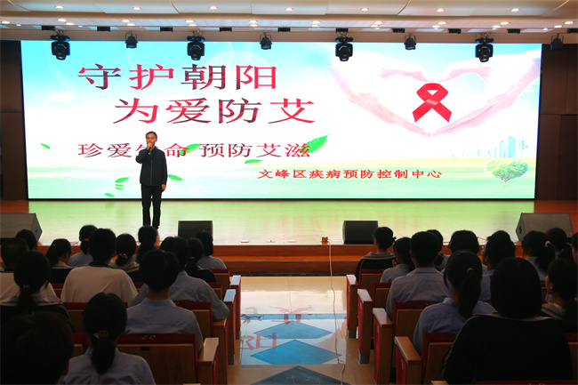 為提高師生身體素質(zhì),傳播健康理念,共同營(yíng)造健康生活環(huán)境。9月26日,文峰區(qū)疾病預(yù)防控制中心科長(zhǎng)金長(zhǎng)虹到我校開(kāi)展“守護(hù)朝陽(yáng),為愛(ài)防艾”專題講座。 學(xué)校在教學(xué)樓大廳擺放健康宣傳畫(huà),倡導(dǎo)青少年做自己健康第一責(zé)任人的理念,引導(dǎo)學(xué)生形成自主自律的健康生活方式。 金科長(zhǎng)通過(guò)提問(wèn)互動(dòng)的方式,結(jié)合相關(guān)案例,向?qū)W生們介紹艾滋病危害、傳播途徑、預(yù)防手段等知識(shí)。本次講座有效提高了師生們對(duì)艾滋病防治的認(rèn)知水平,有助于師生提升自我防范意識(shí)、消除恐懼心理,做預(yù)防艾滋病的堅(jiān)強(qiáng)捍衛(wèi)者。 我校將繼續(xù)加大宣傳力度,以多種形式進(jìn)行健康科普宣傳,努力引導(dǎo)廣大師生增強(qiáng)科學(xué)健康意識(shí),珍愛(ài)生命,追求健康的生活方式。 |