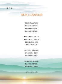 卷 首 語 我們站立在高高的山巔 我們站立在高高的山巔袁 化身為一望無邊的遠景袁 化成面前的廣漠的平原袁 化成平原上交錯的蹊徑遙 哪條路堯 哪道水袁 沒有關(guān)聯(lián)袁 哪陣風(fēng)堯 哪片云袁 沒有呼應(yīng)院 我們走過的城市堯 山川袁 都化成了我們的生命遙 我們的生長堯 我們的憂愁袁 是某某山坡的一棵松樹袁 是某某城上的一片濃霧曰 我們隨著風(fēng)吹袁 隨著水流袁 化成平原上交錯的蹊徑袁 化成蹊徑上行人的生命遙 選自馮至 葉十四行詩曳